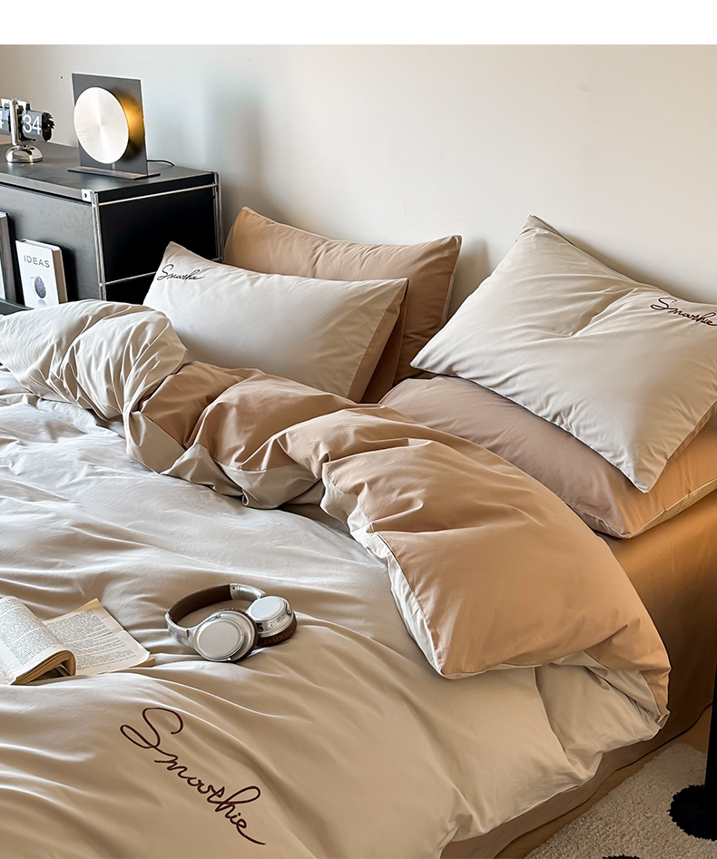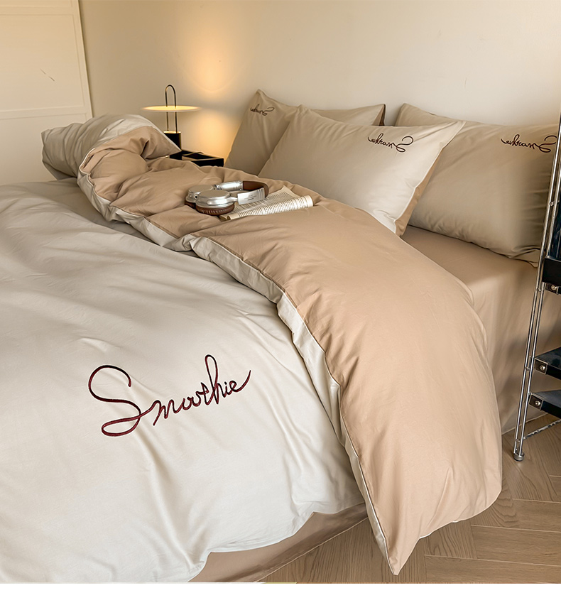 当前位置: 91家纺网 > 商品网购 > 床品套件 > 四件套 > 全棉普通四件套 > ab家纺 2026新款刺绣双拼40支全棉水洗四件套 紫灰