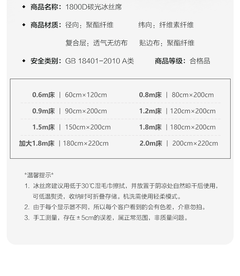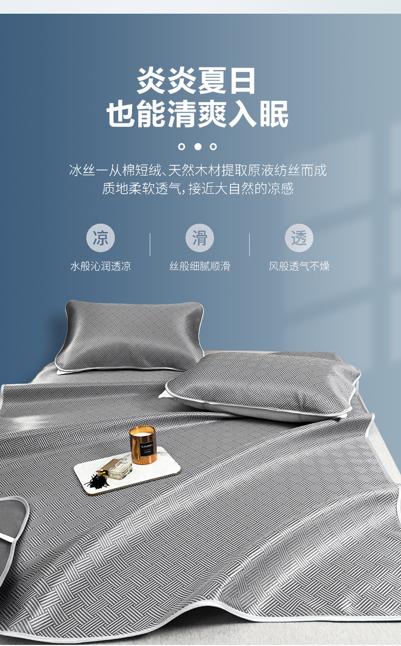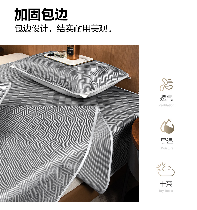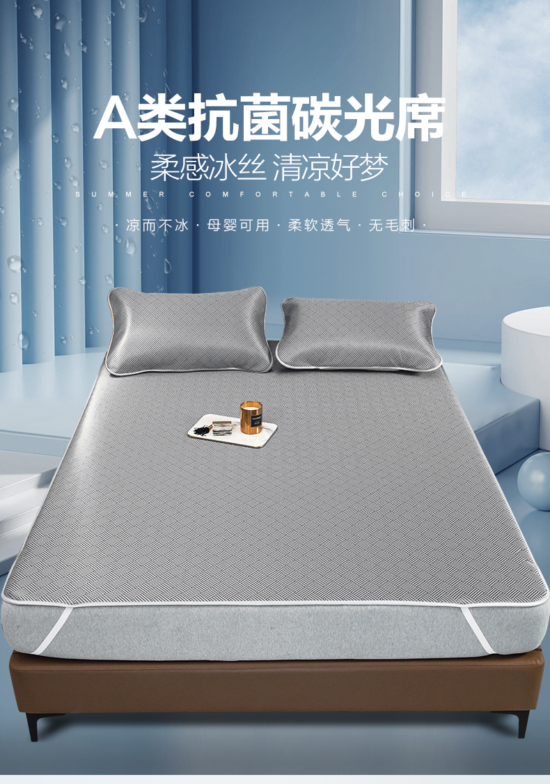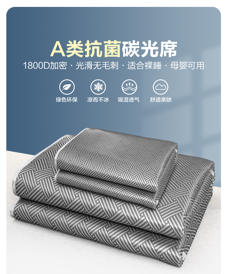 商品名称:(总)莱家富 2026新款1800DA类抗菌艾草驱蚊碳光冰丝凉席三件套