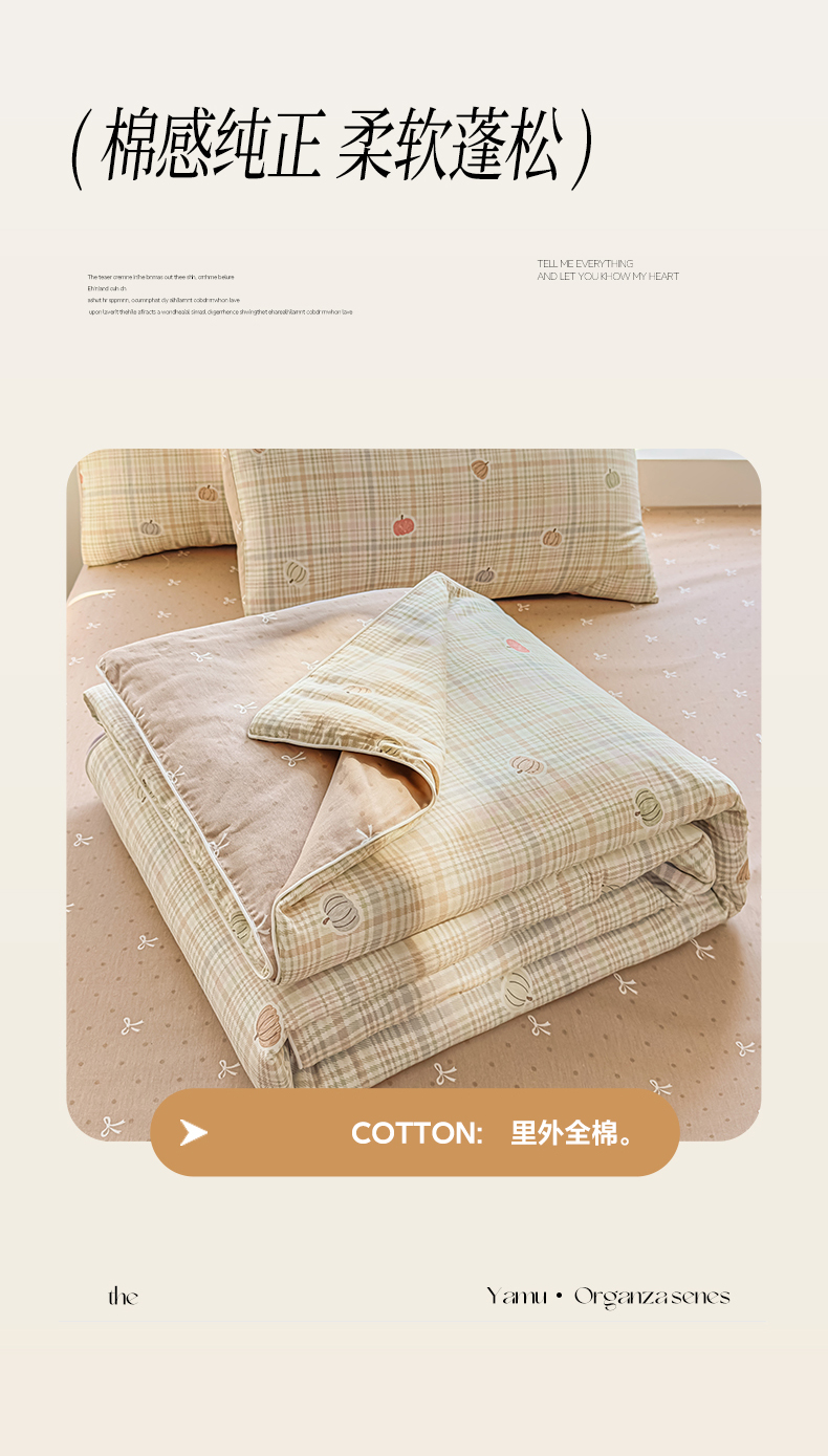 • 91家纺网 家纺一手货源 找家纺 典冠 2026新款100%里外全棉夏被 夏被四件套 南瓜派