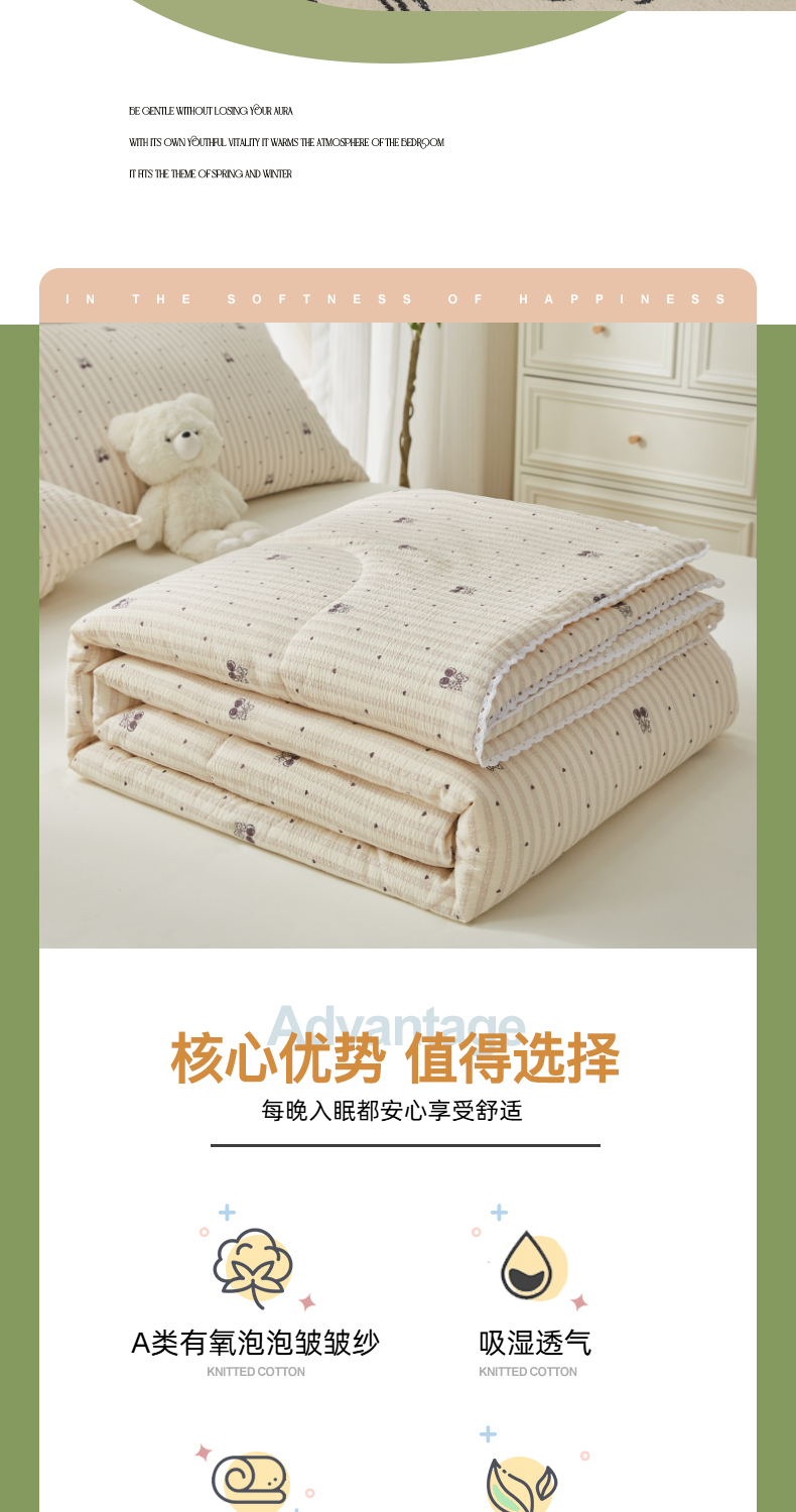 (总)帕芬鸟家纺 2026春夏新款双层皱皱纱水洗棉大豆夏被夏凉被空调被