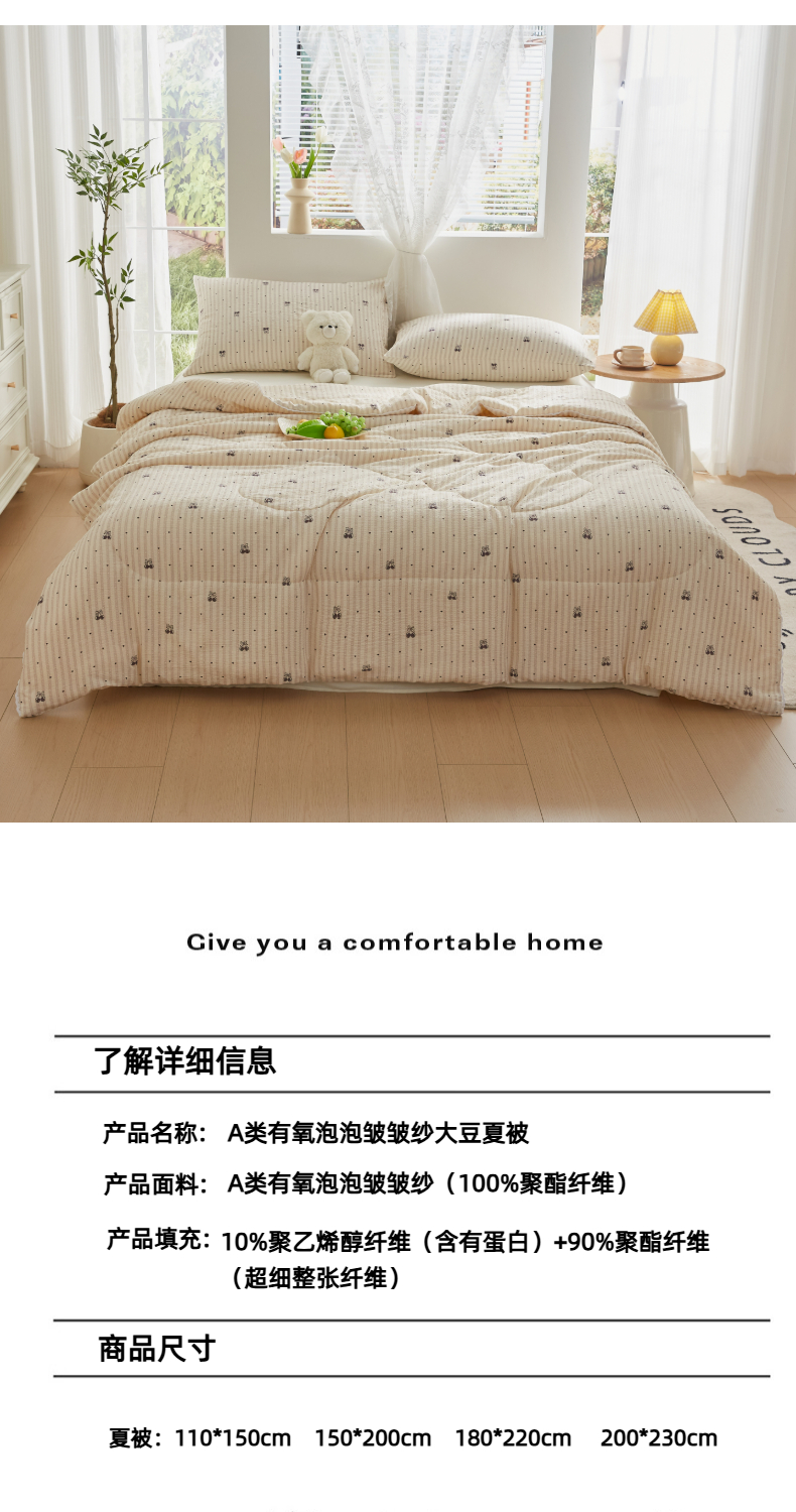 商品名称:(总)帕芬鸟家纺 2026春夏新款双层皱皱纱水洗棉大豆夏被夏凉被空调被