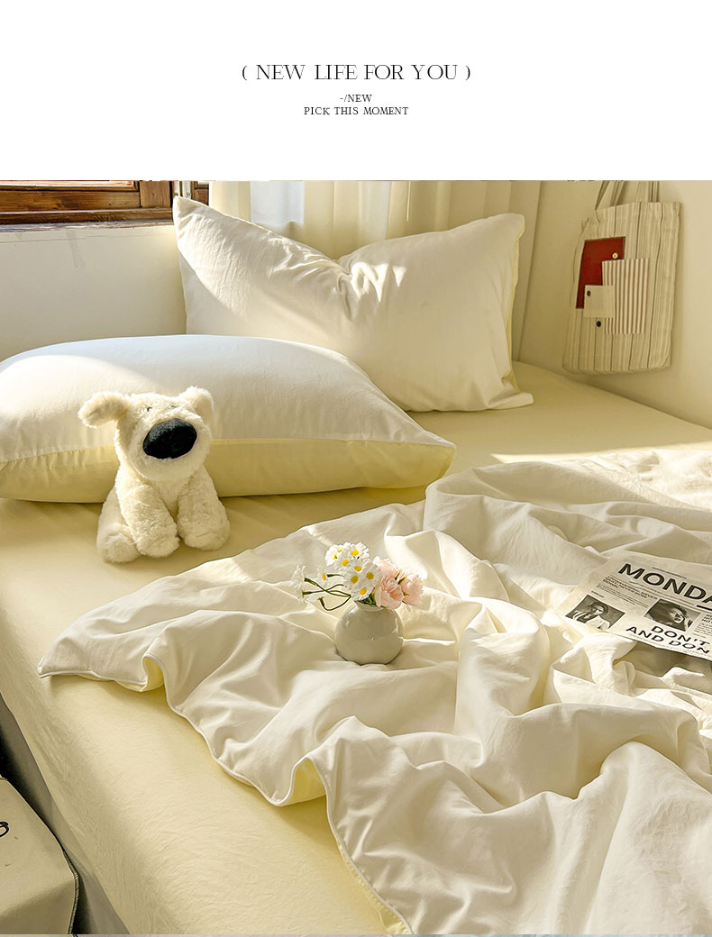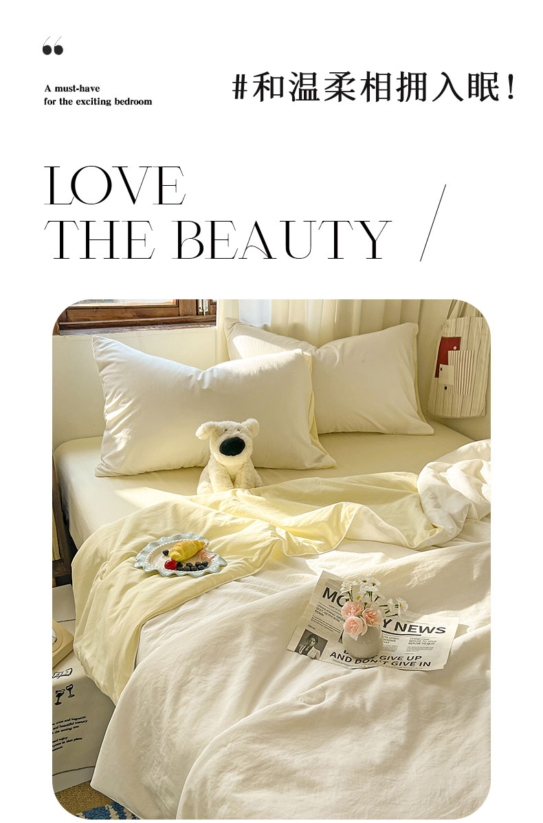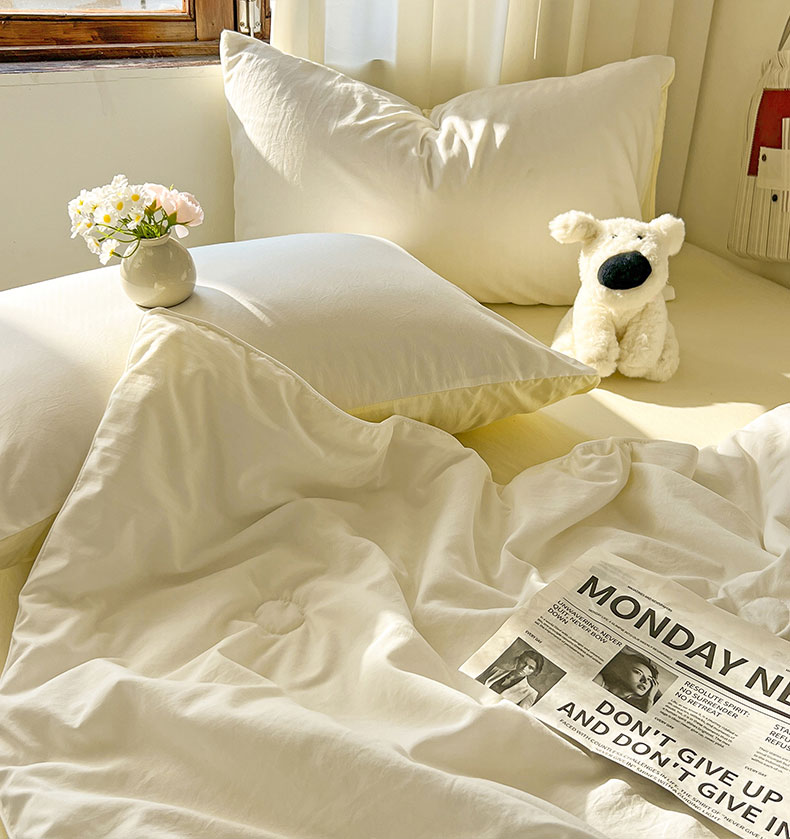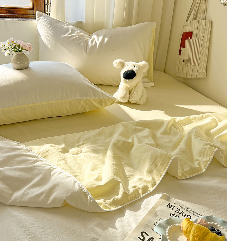 当前位置: 91家纺网 > 商品网购 > 床品套件 > 四件套 > 夏被四件套 > 冕悠家纺 2026春夏新款A类高克重超级无敌柔软水洗棉拼色夏被空调被夏凉被四件套 芝士+奶白-夏凉被
