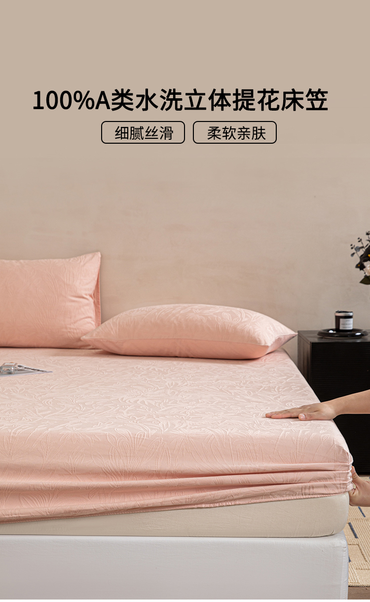 • 91家纺网 家纺一手货源 找家纺 眠博士 2026春夏新款60水洗立体提花床笠床笠单价 床笠-绵语-粉