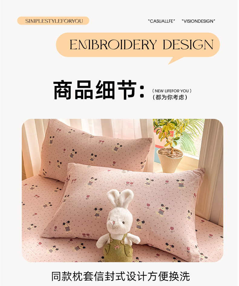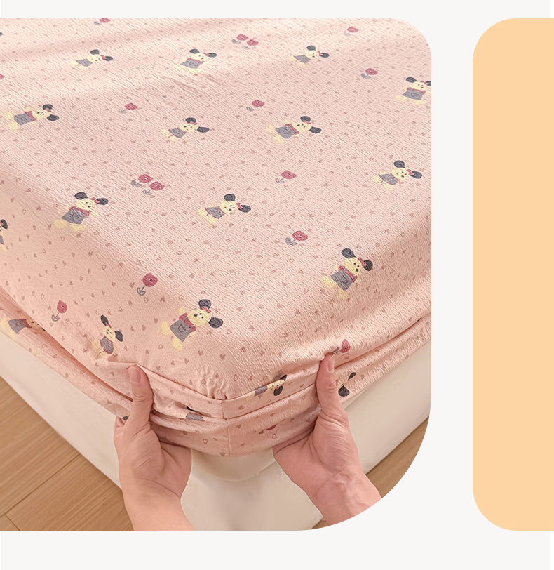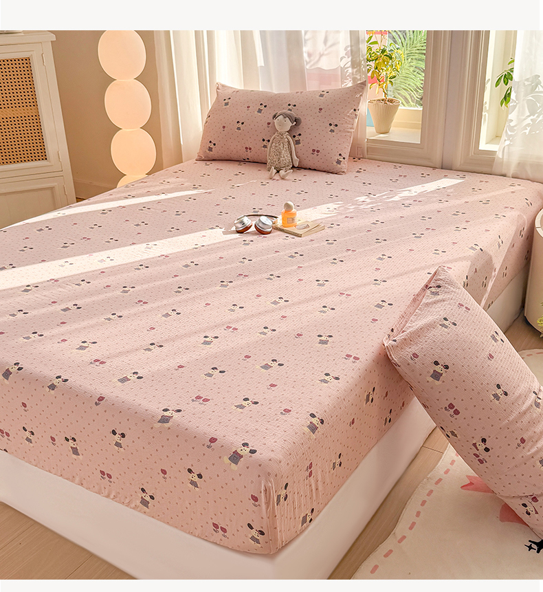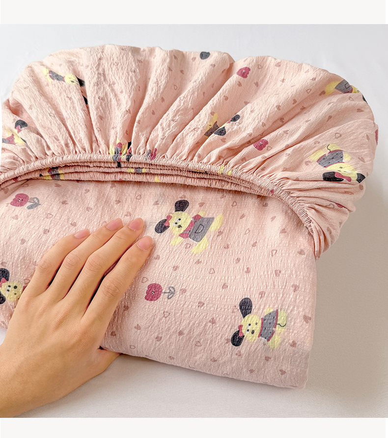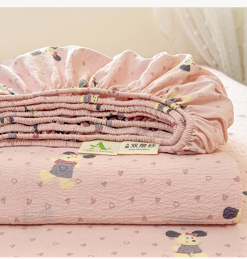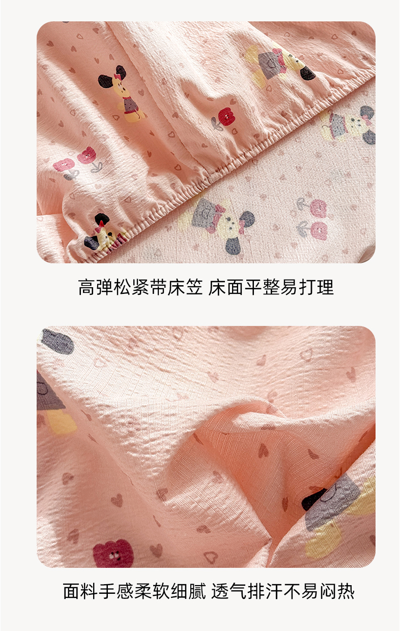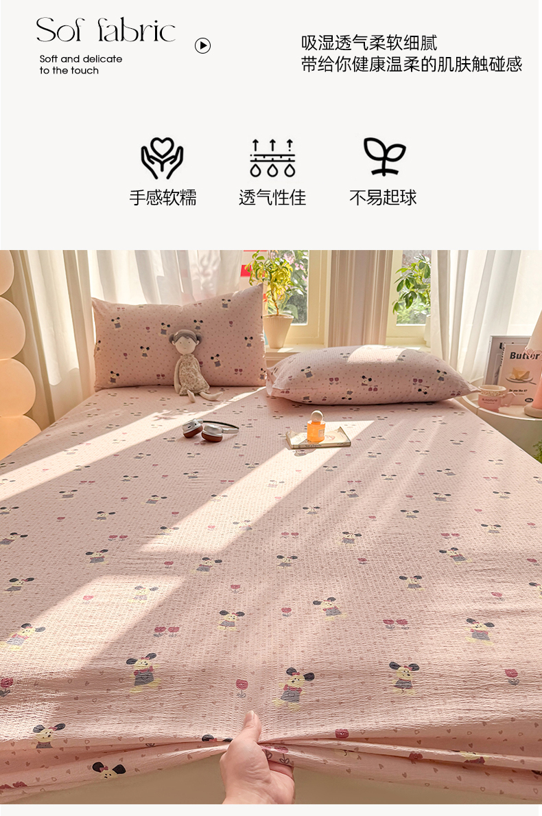丝芙妮家居 2026新款四季皱皱棉柔软透气不闷汗木棉床笠单件三件套-系列三 花枝狗狗