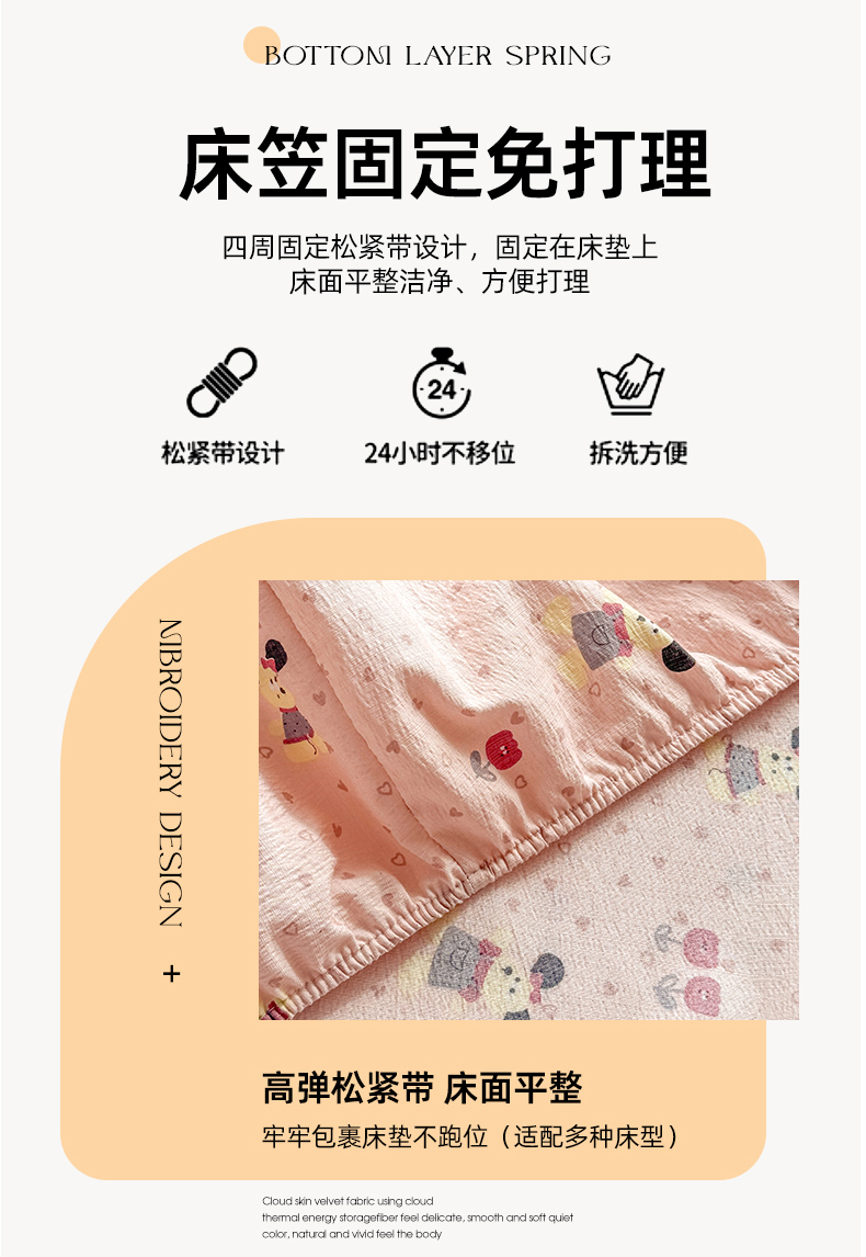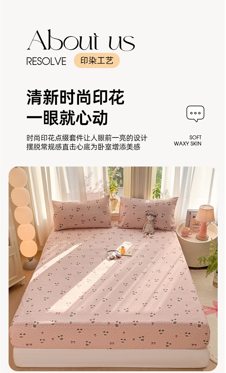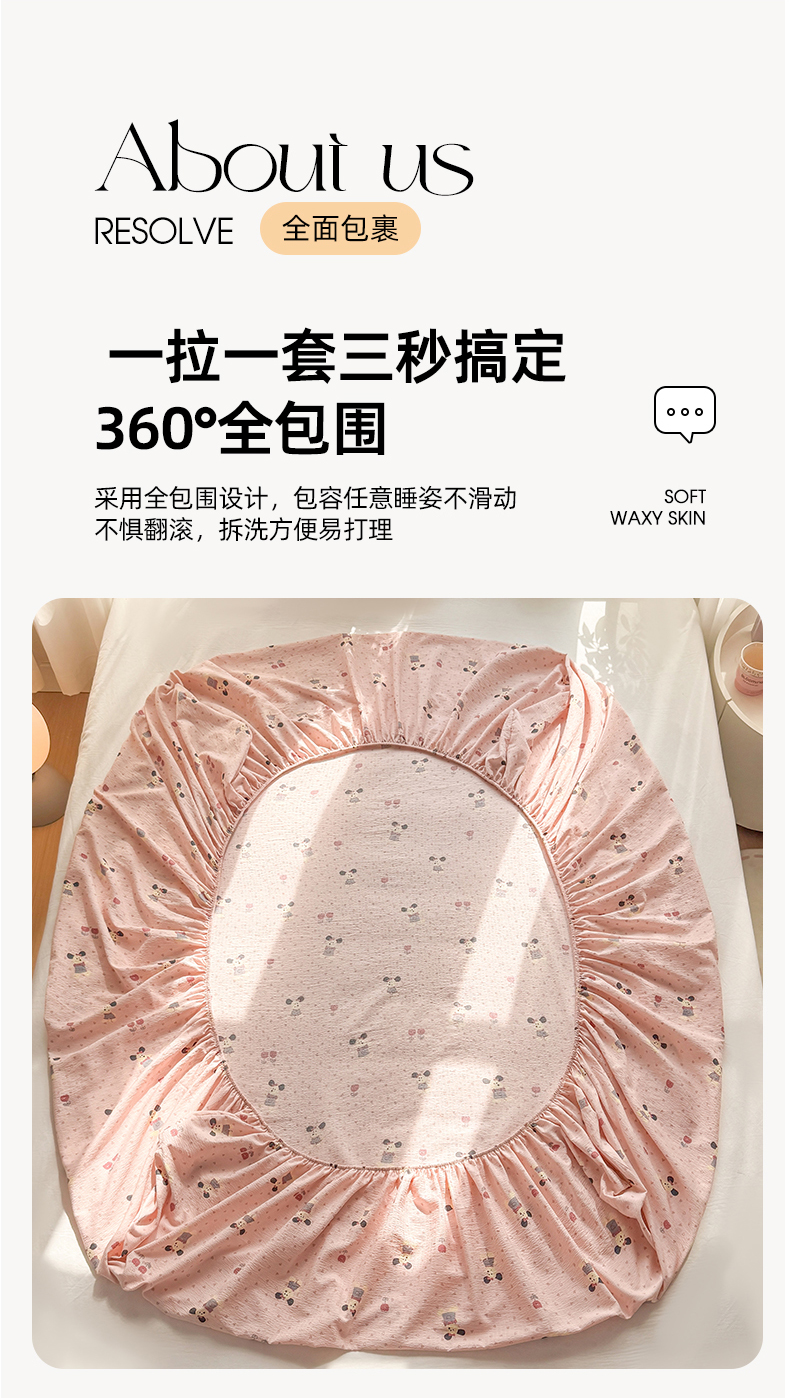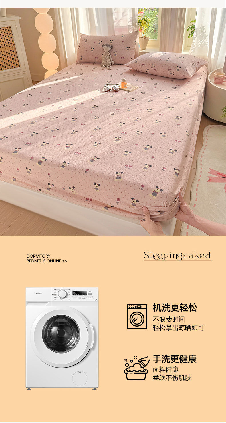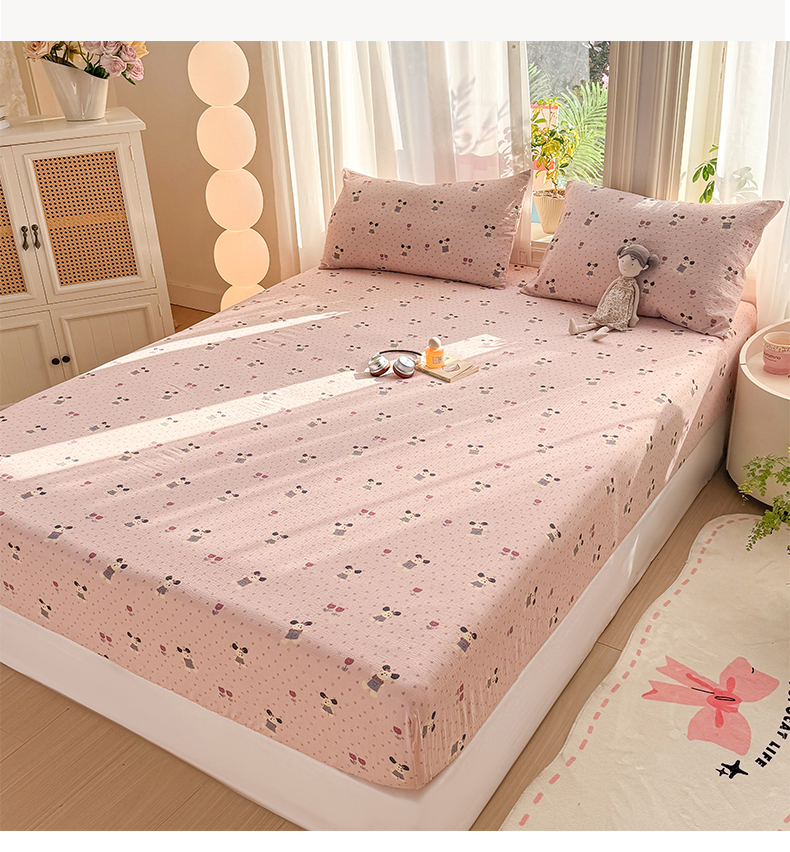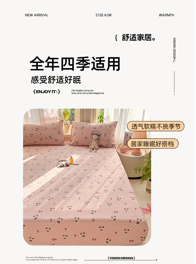 丝芙妮家居 2026新款四季皱皱棉柔软透气不闷汗木棉床笠单件三件套-系列三 花枝狗狗