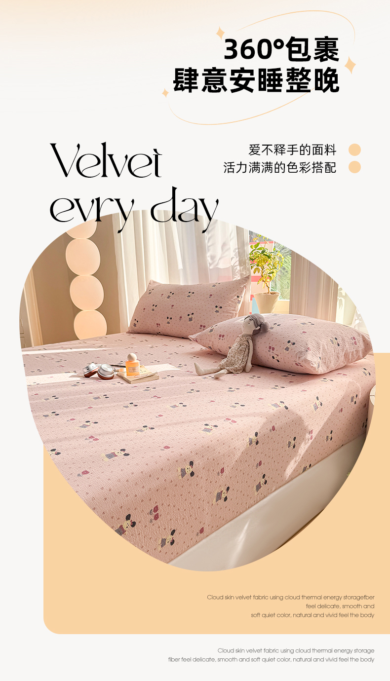 • 91家纺网 家纺一手货源 找家纺 丝芙妮家居 2026新款四季皱皱棉柔软透气不闷汗木棉床笠单件三件套-系列三 花枝狗狗