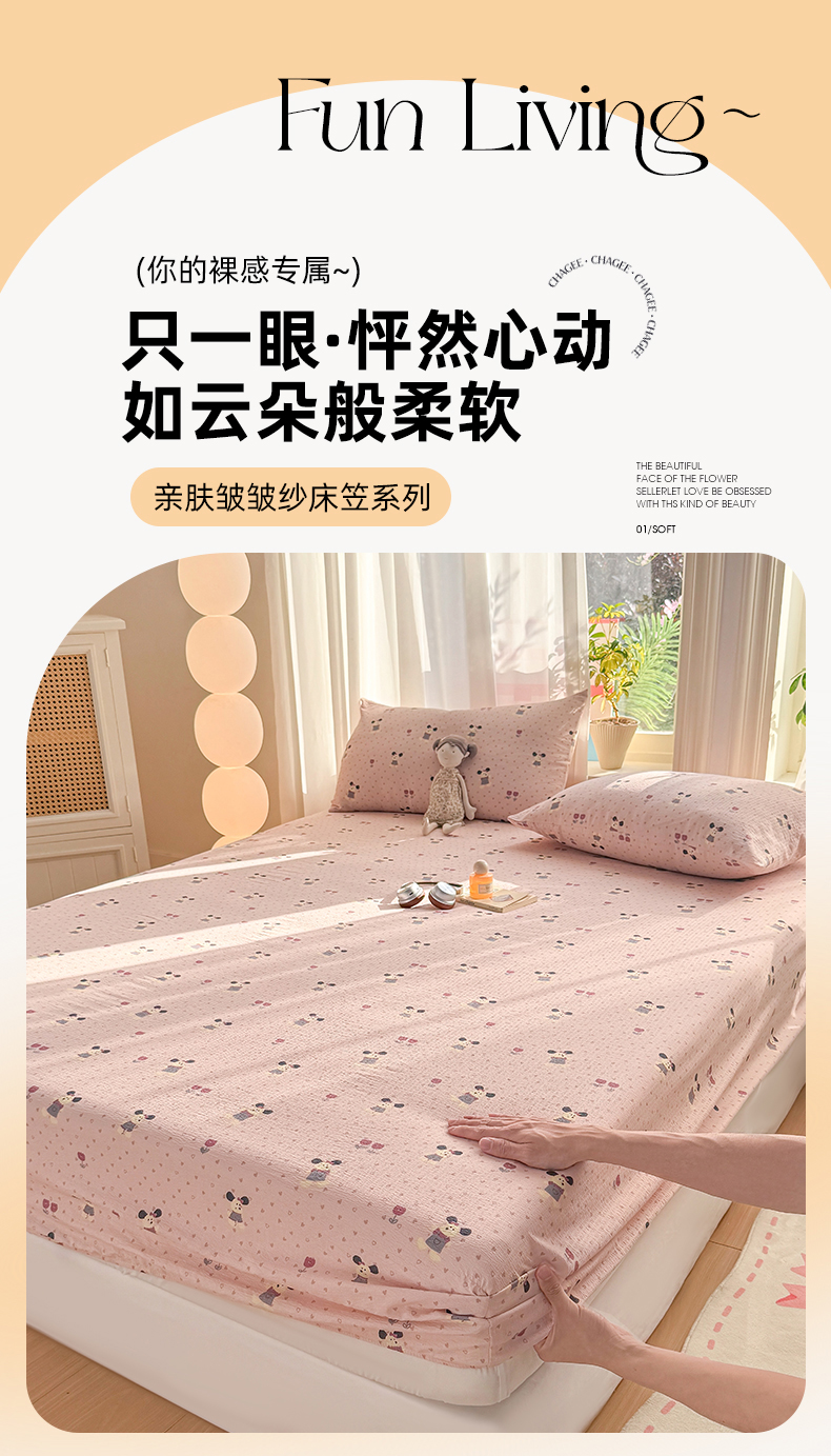 (总)丝芙妮家居 2026春夏新款皱皱棉双层纱泡芙棉床笠 床笠单件,晨光-黄,晨光-灰,花簇,怀旧-兰,牧歌,顽宠,雅蔓,樱桃,云蝶-粉,云蝶-兰,知锦,组合图仅供展示不可下单