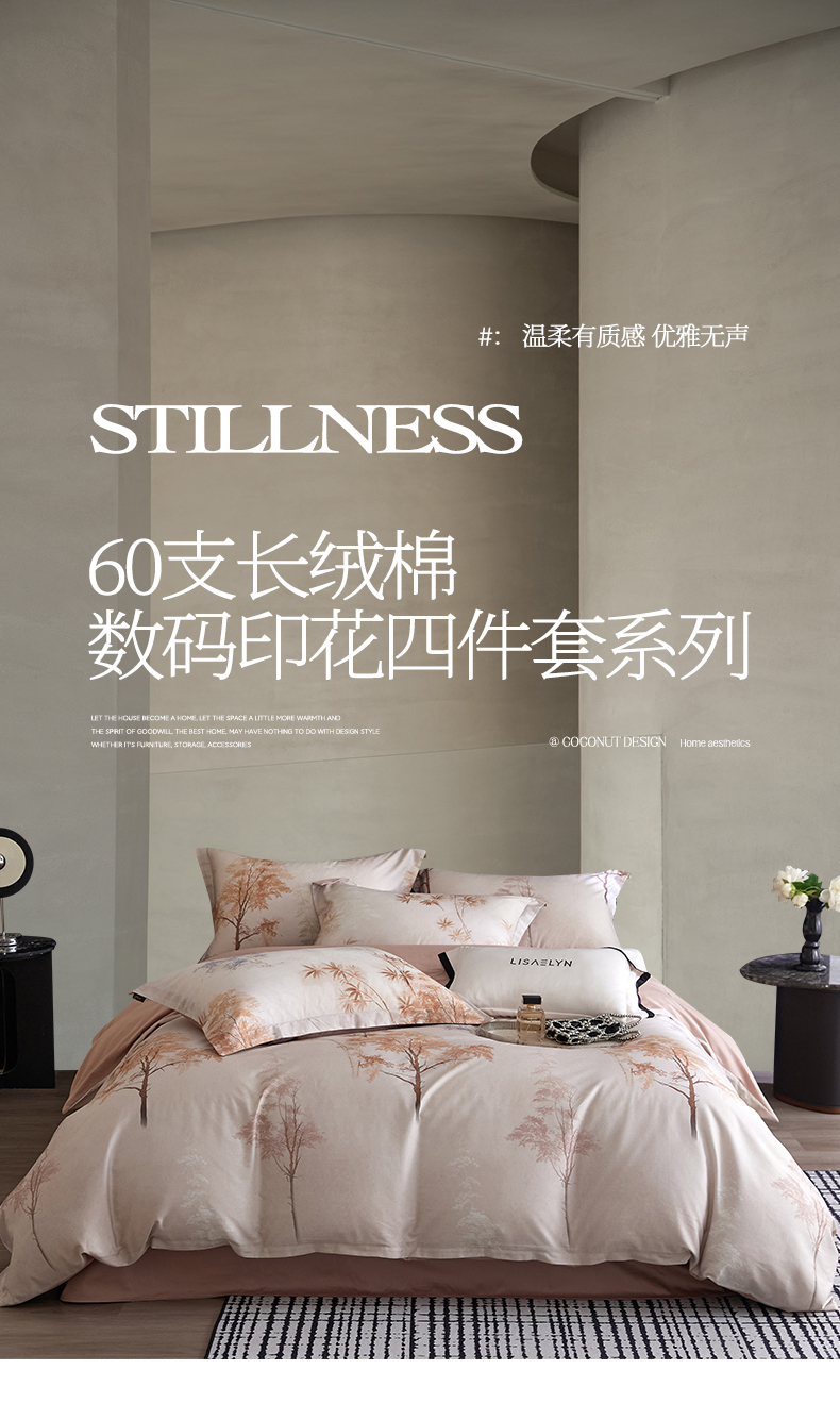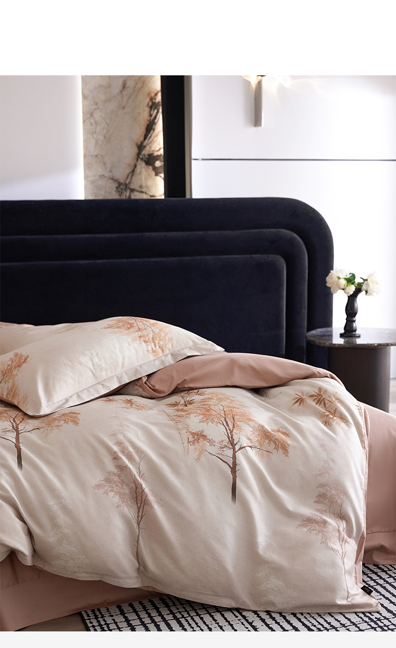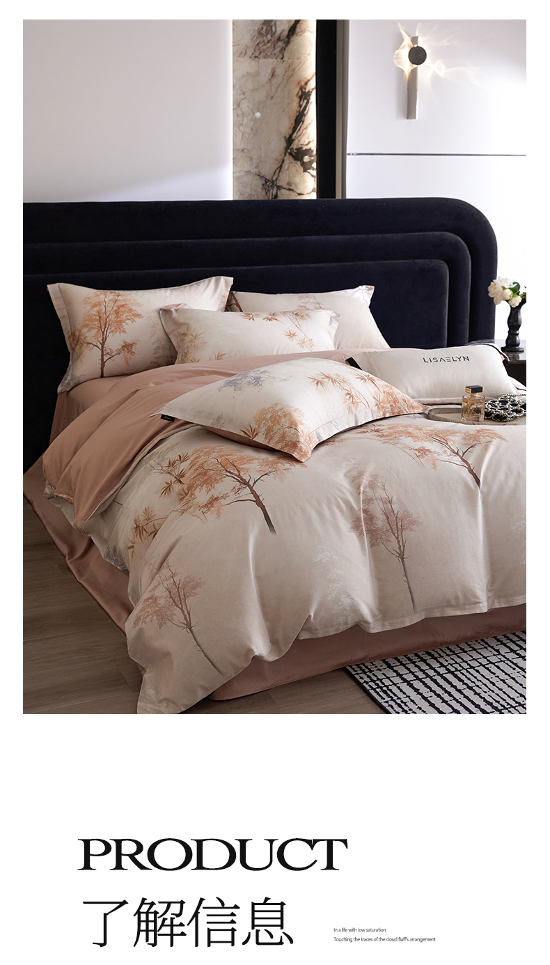 商品名称:帅露家纺 2026新款全棉60支长绒棉数码印花四件套 森屿咖