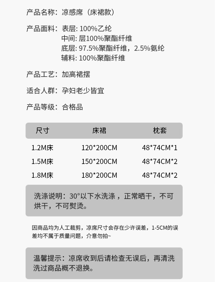 120*200cm床裙凉席两件套