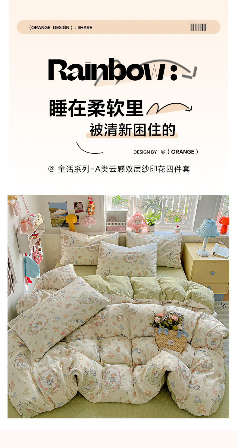 (总)朵朵家纺 2026新款高级感轻奢复古美拉德色系双层纱泡芙棉床品四件套加厚水洗双层纱软,马上有福,花姿,粉红波点,蓝色泡芙狗,绿樱,紫苏,爱丽丝兔,春风拂梦,马上有福2,漫野,木马拾光,暮光,奶芙兔,奶蓝甜结,青花瓷,清欢,素碟吟,晚棠,盐系格绊,知音咖,紫萝漫想,紫韵,醉玲珑