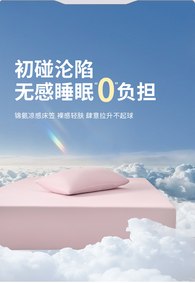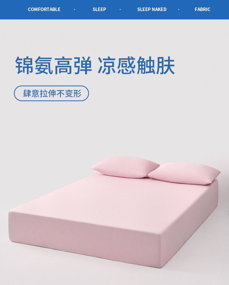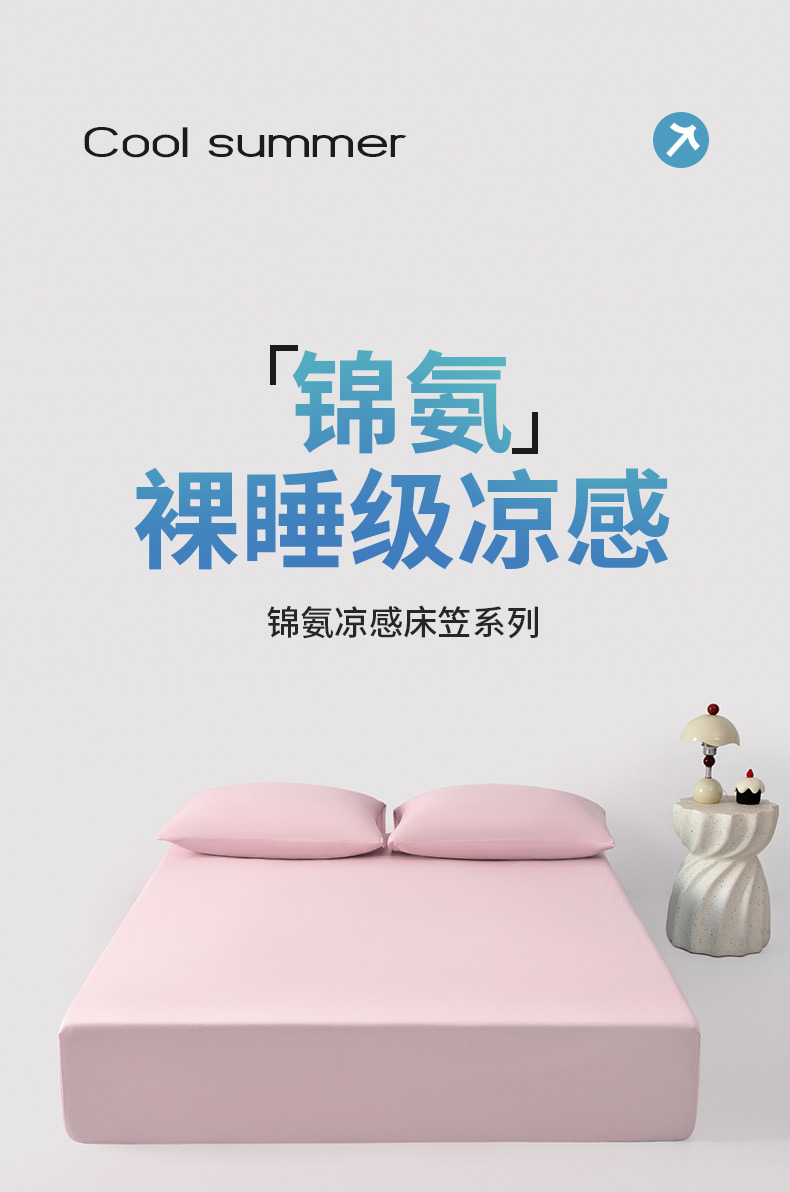 商品名称:其奥家纺 2026新款锦氨凉感床笠三件套A类耐磨5级0.35凉感有检测报告 雾粉
