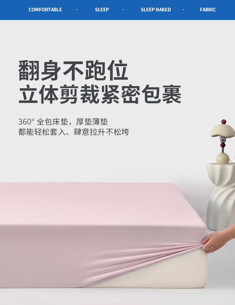 其奥家纺 2026新款锦氨凉感床笠三件套A类耐磨5级0.35凉感有检测报告 雾粉