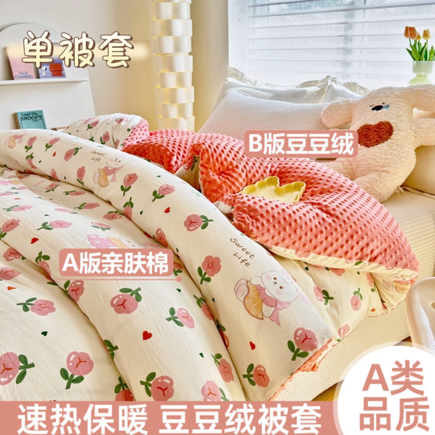 赛琳 2026新款AB版亲肤棉豆豆绒单被套四季通用单独被套被套单件单被套(有买家秀) 粉色小兔