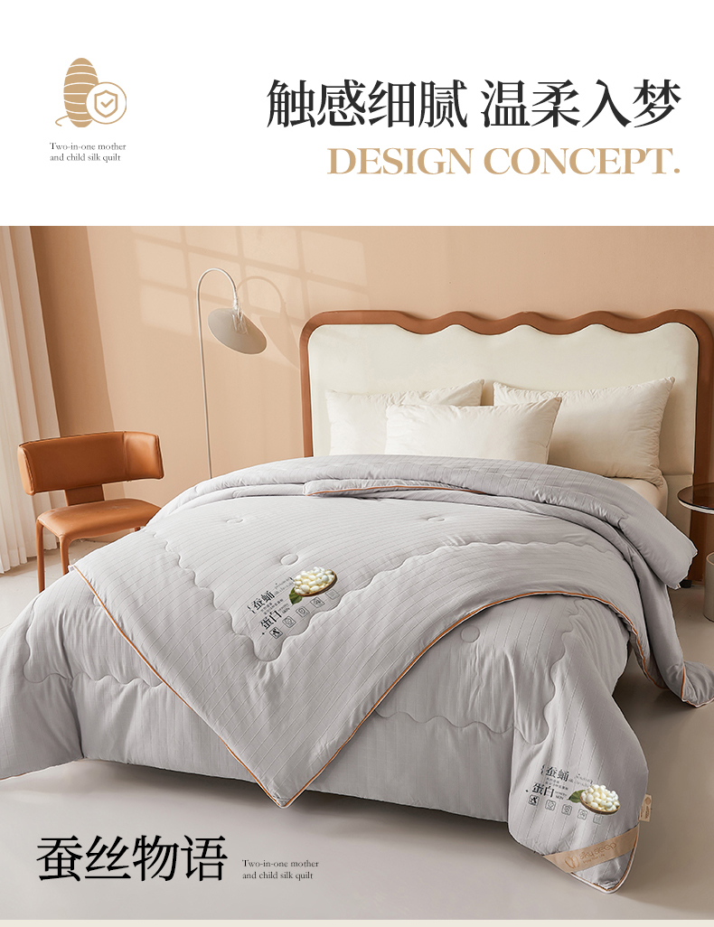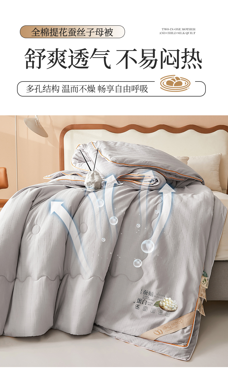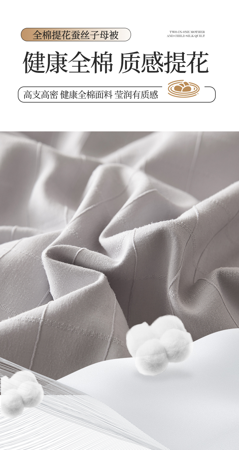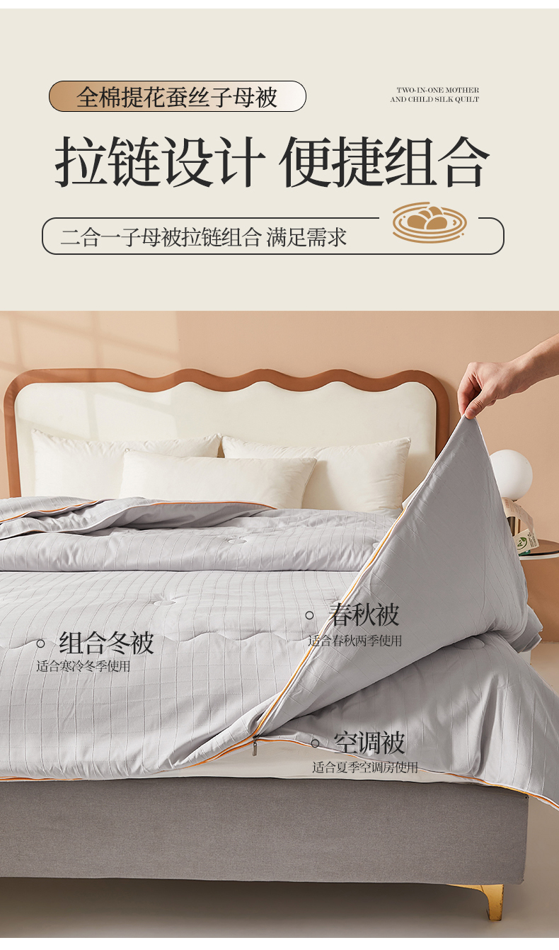 • 91家纺网 家纺一手货源 找家纺 小禹仔家纺 2026新款全棉提花蚕丝被拉链二合一子母被冬被春秋被夏被被子被芯加厚棉被 时尚灰