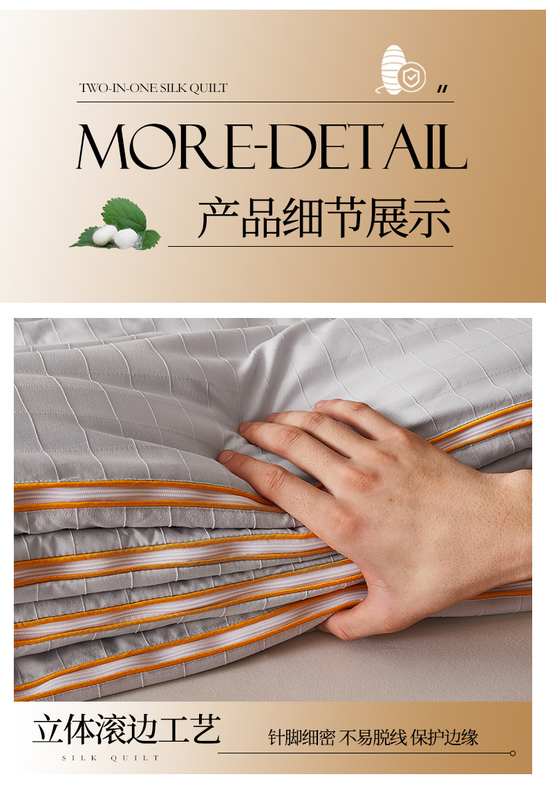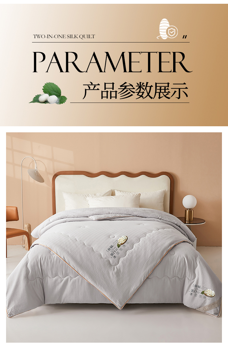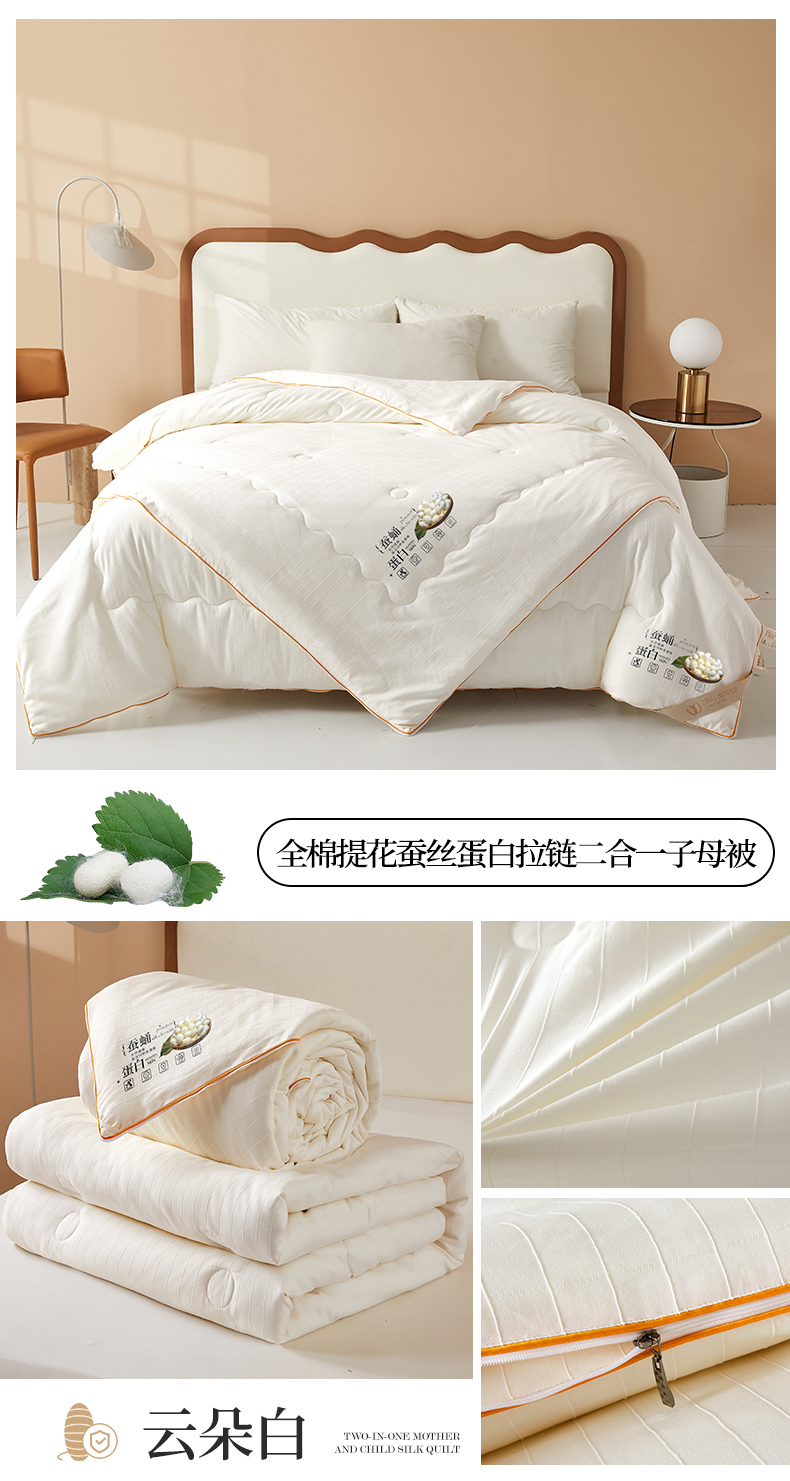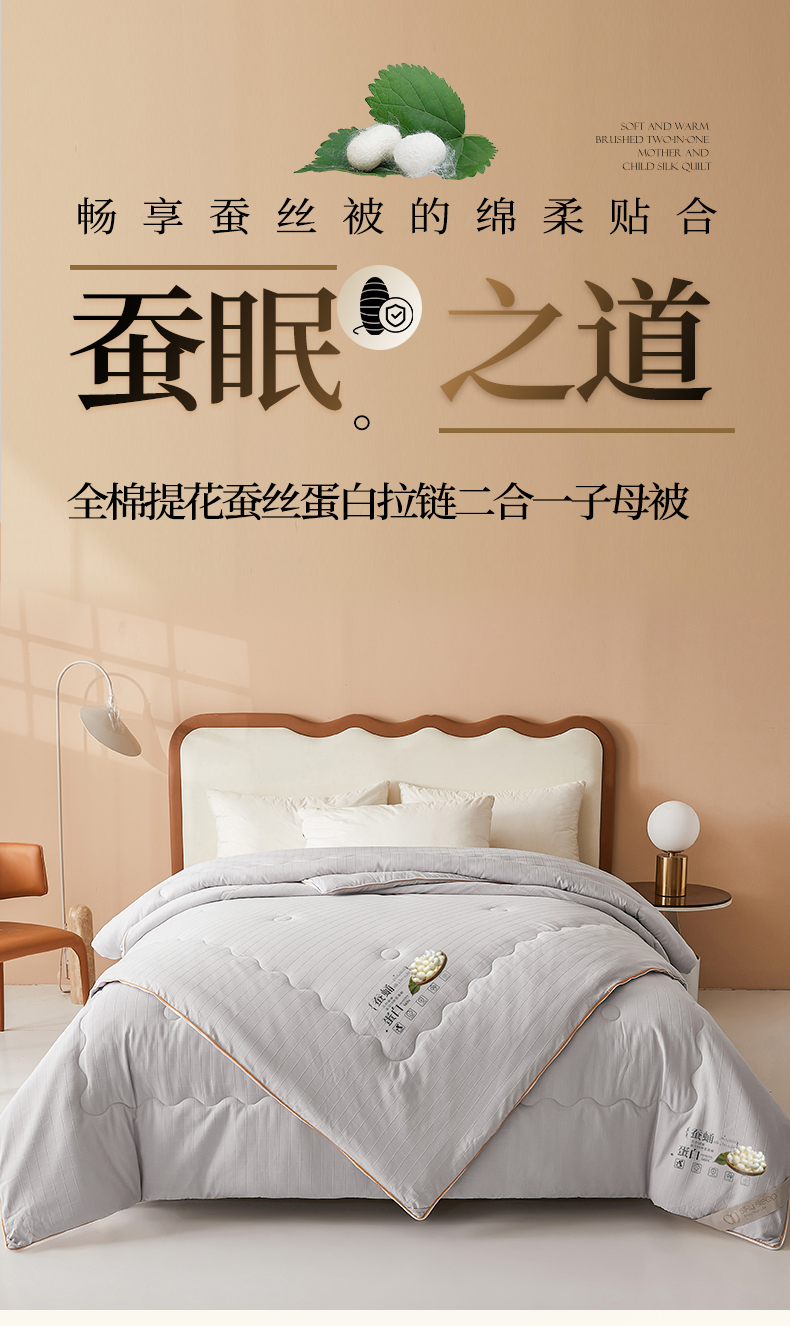 • 91家纺网 家纺一手货源 找家纺 小禹仔家纺 2026新款全棉提花蚕丝被拉链二合一子母被冬被春秋被夏被被子被芯加厚棉被 时尚灰