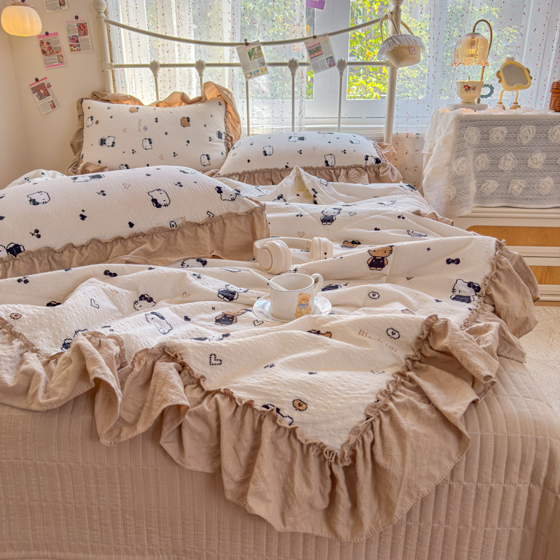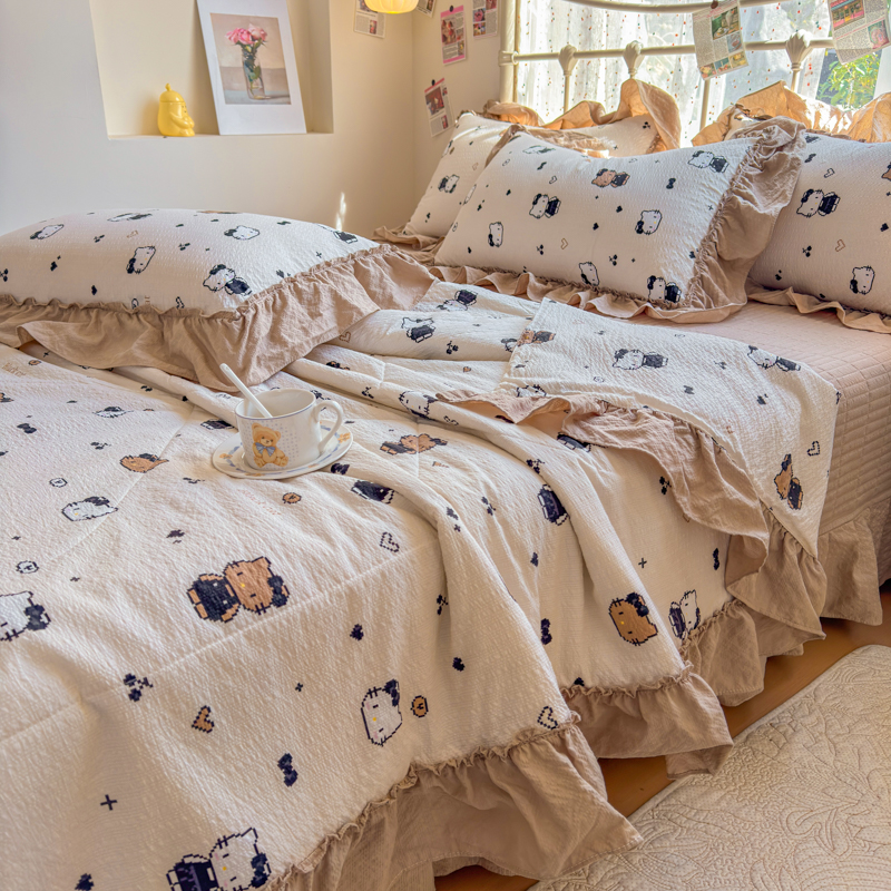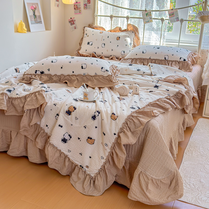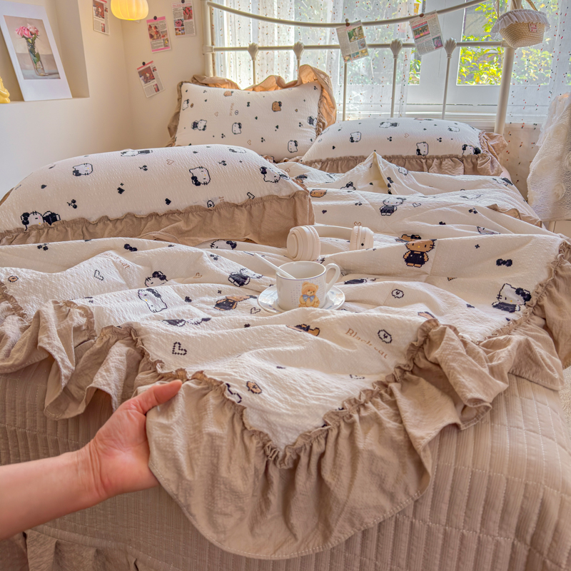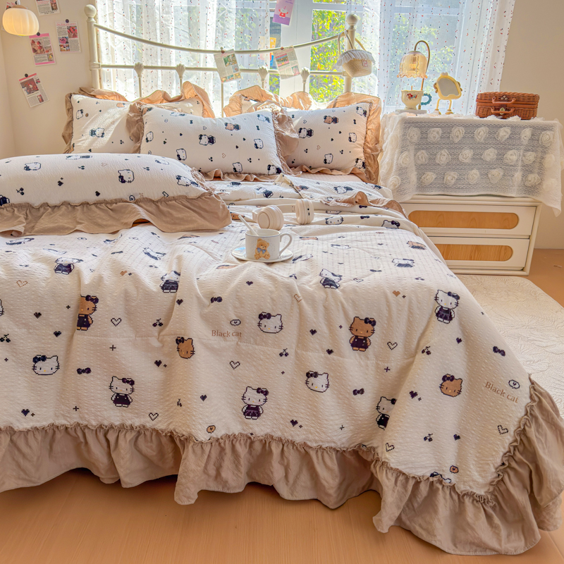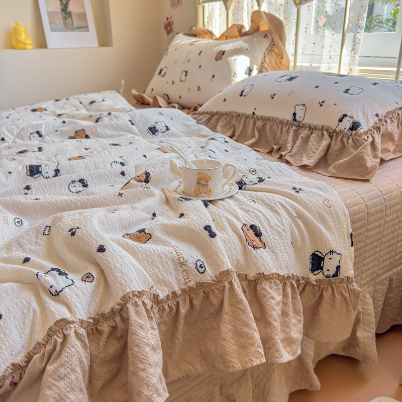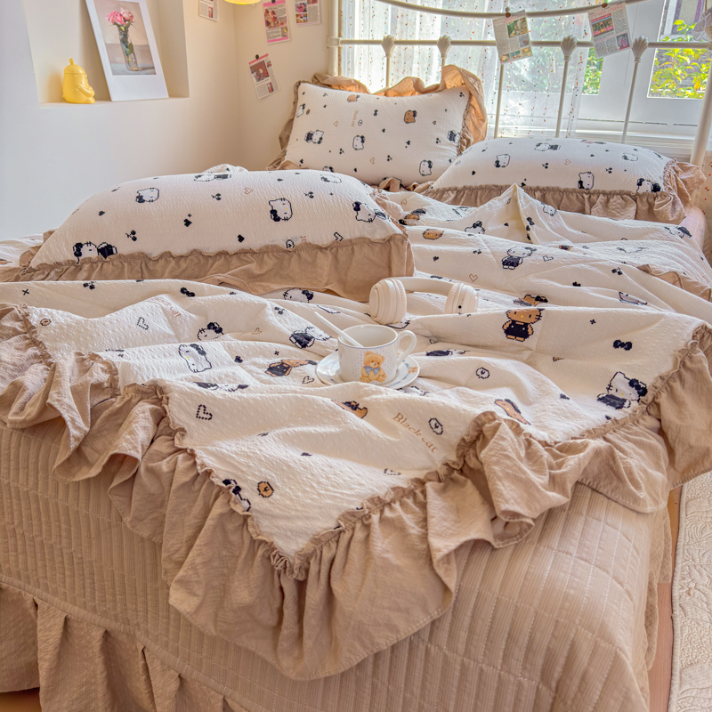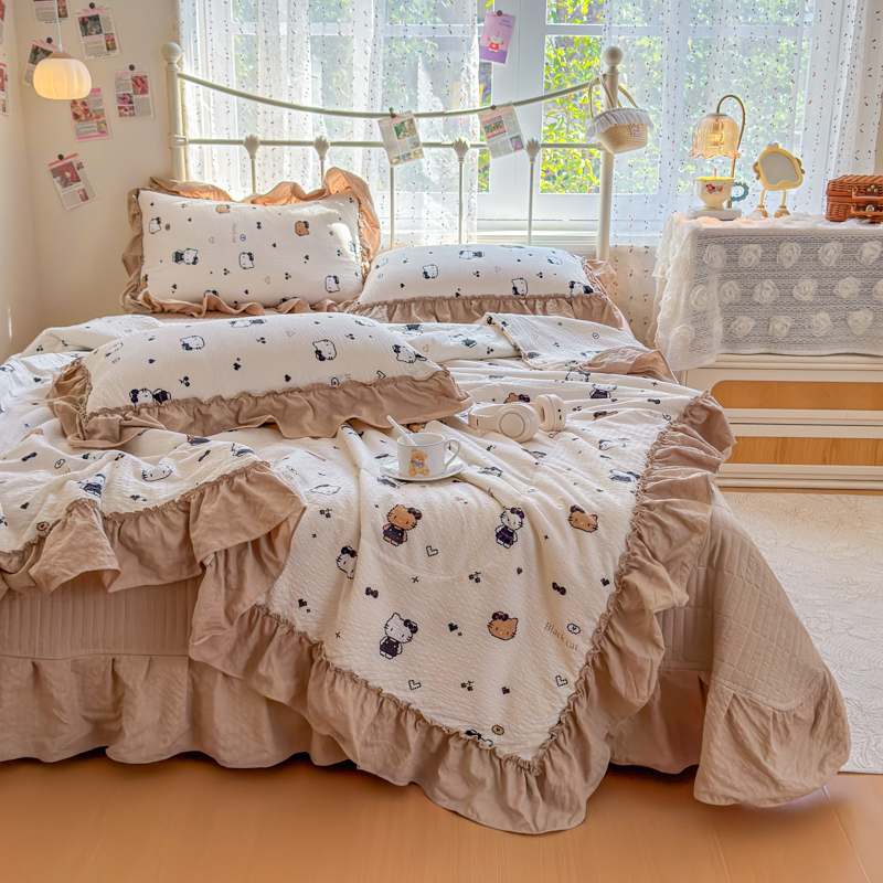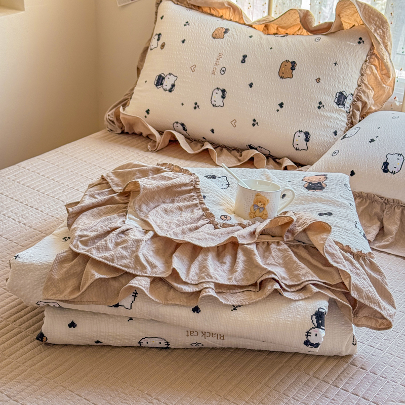 梵希雅 2026新款泡芙纱床盖夏被四件套 奥利奥小猫