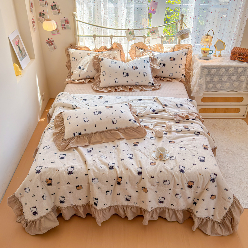 梵希雅 2026新款泡芙纱床盖夏被四件套 曲奇猫,曲奇猫