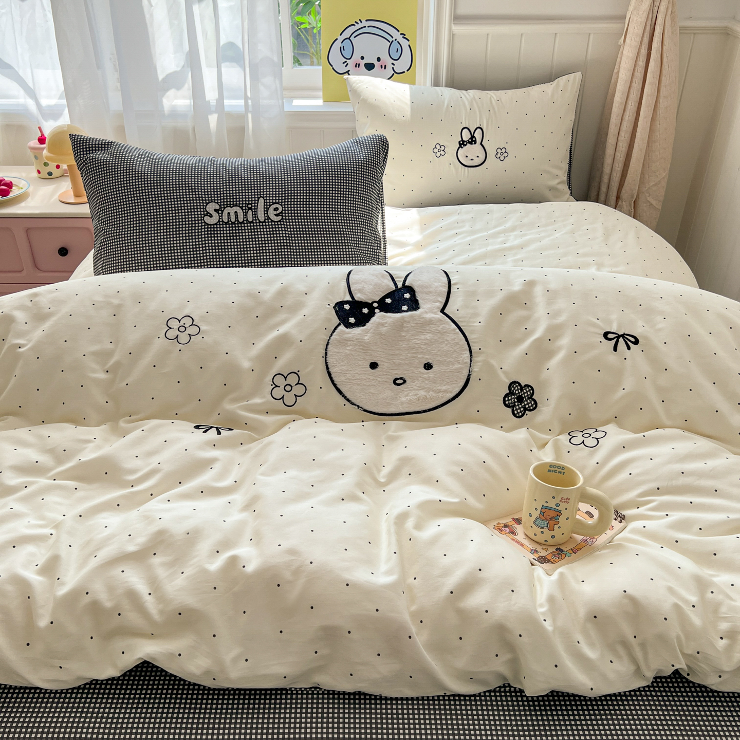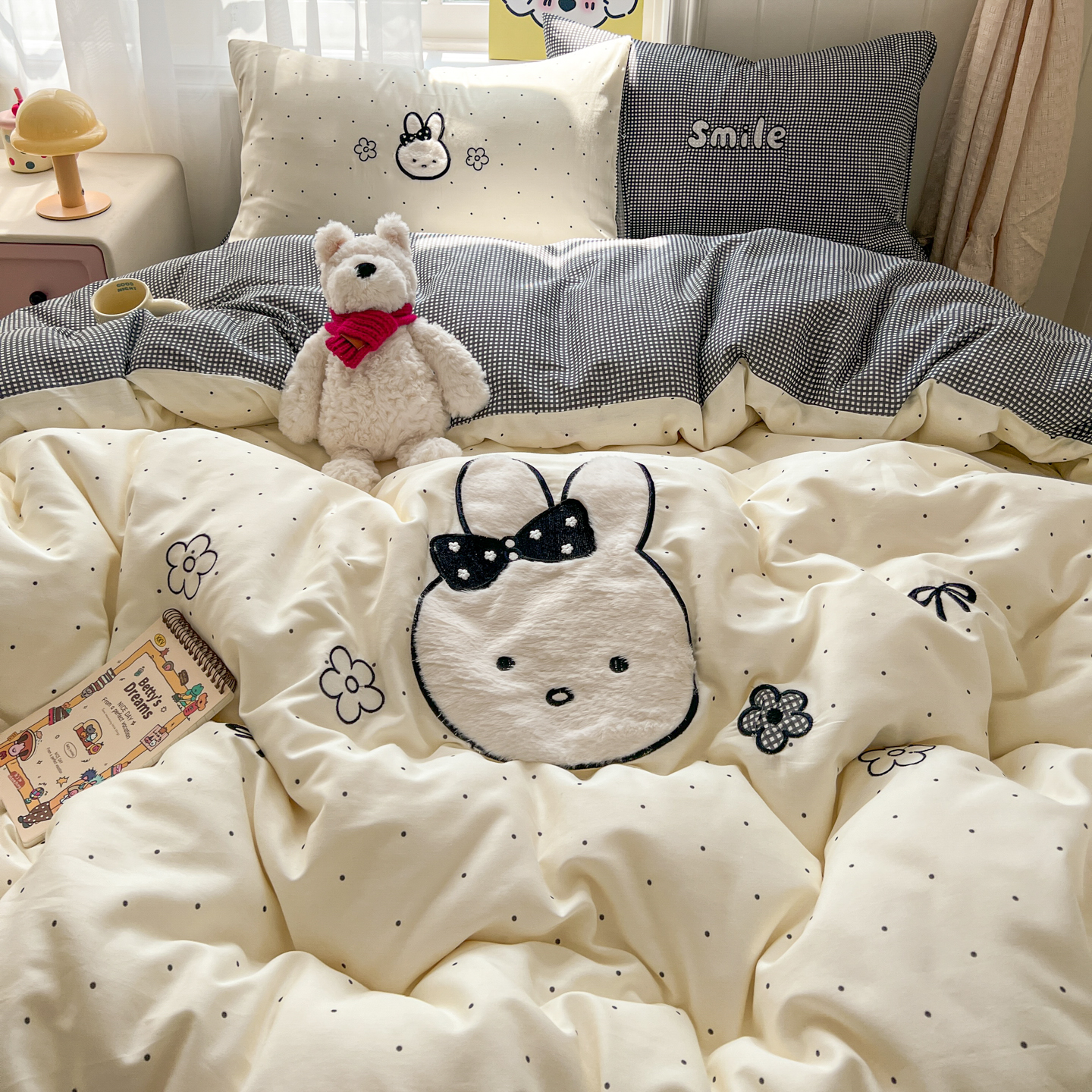 当前位置: 91家纺网 > 商品网购 > 床品套件 > 四件套 > 全棉普通四件套 > 桃喜 2026新款全棉纯棉贴布绣四件套(会员-5元) 蓝苹果兔兔(全棉)