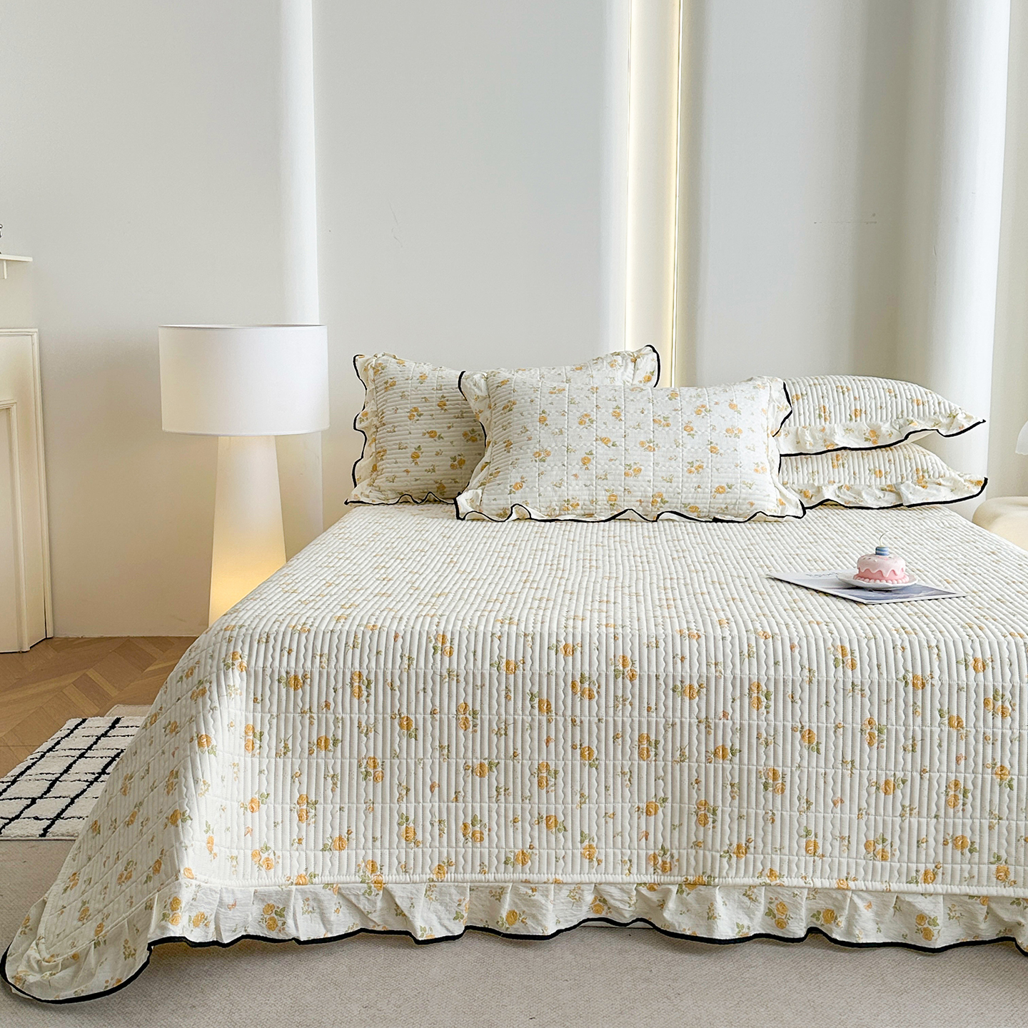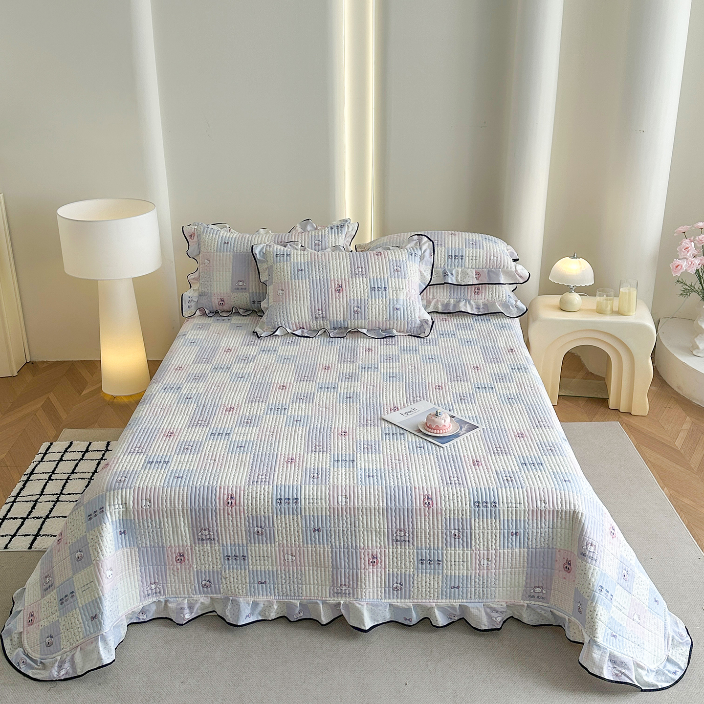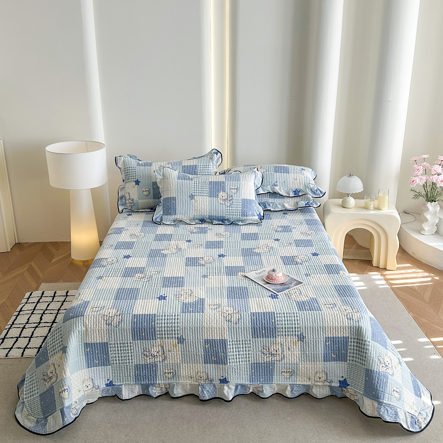 (总)幸嘉轩 2026新款双层纱花边床盖单件加厚夹棉云感皱皱纱花边款床单三件套,蓝布布,春华浓,花姿-豆沙,莫奈-紫,萌友聚会,快乐小象,醉玲珑,半岛花园,紫苏,蓝色泡芙狗,风的印记,北野,一颗樱桃,豆蔻年华-紫,兔野仙踪,吉祥小马,花香容