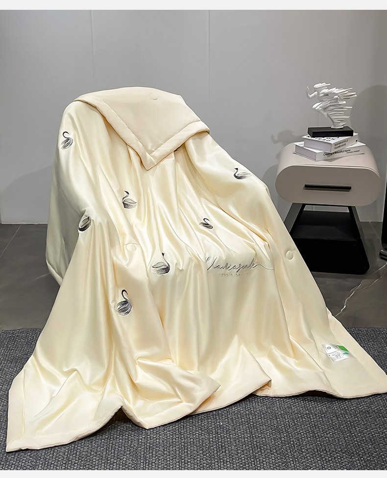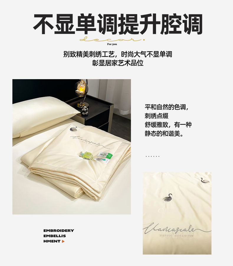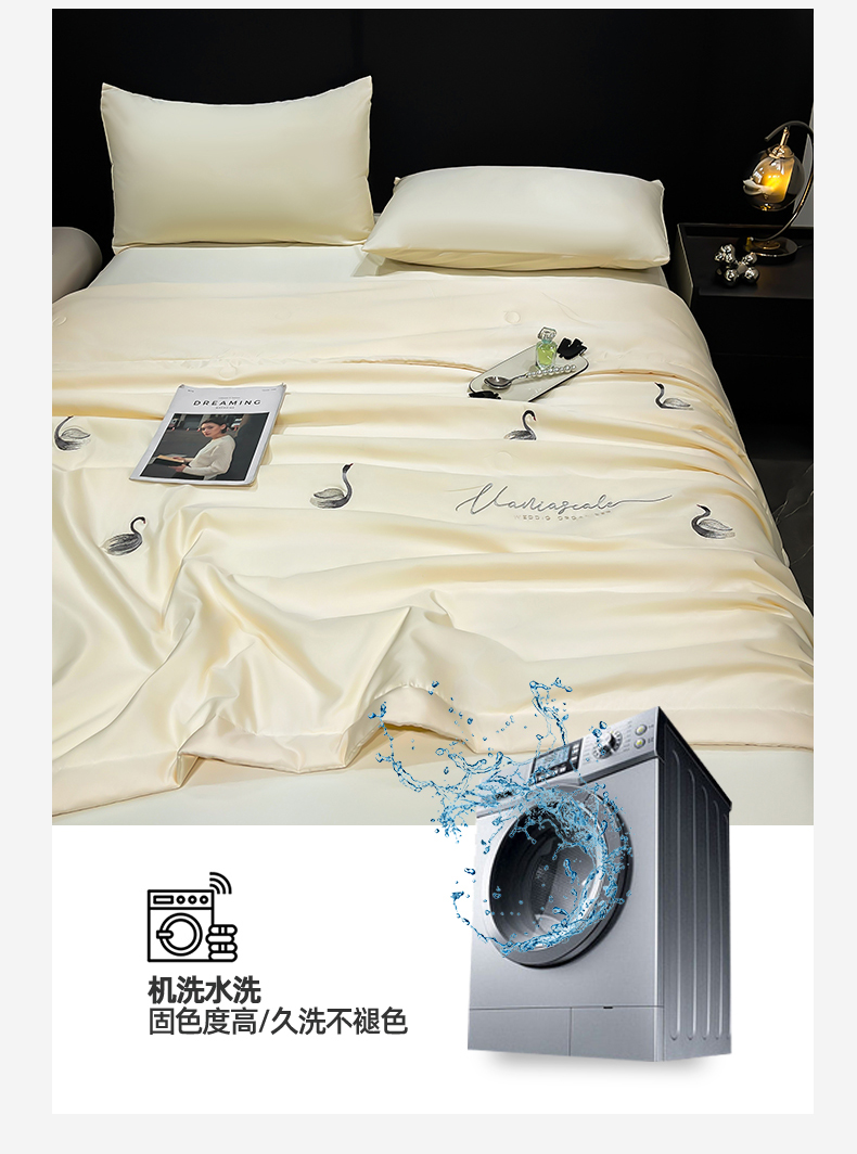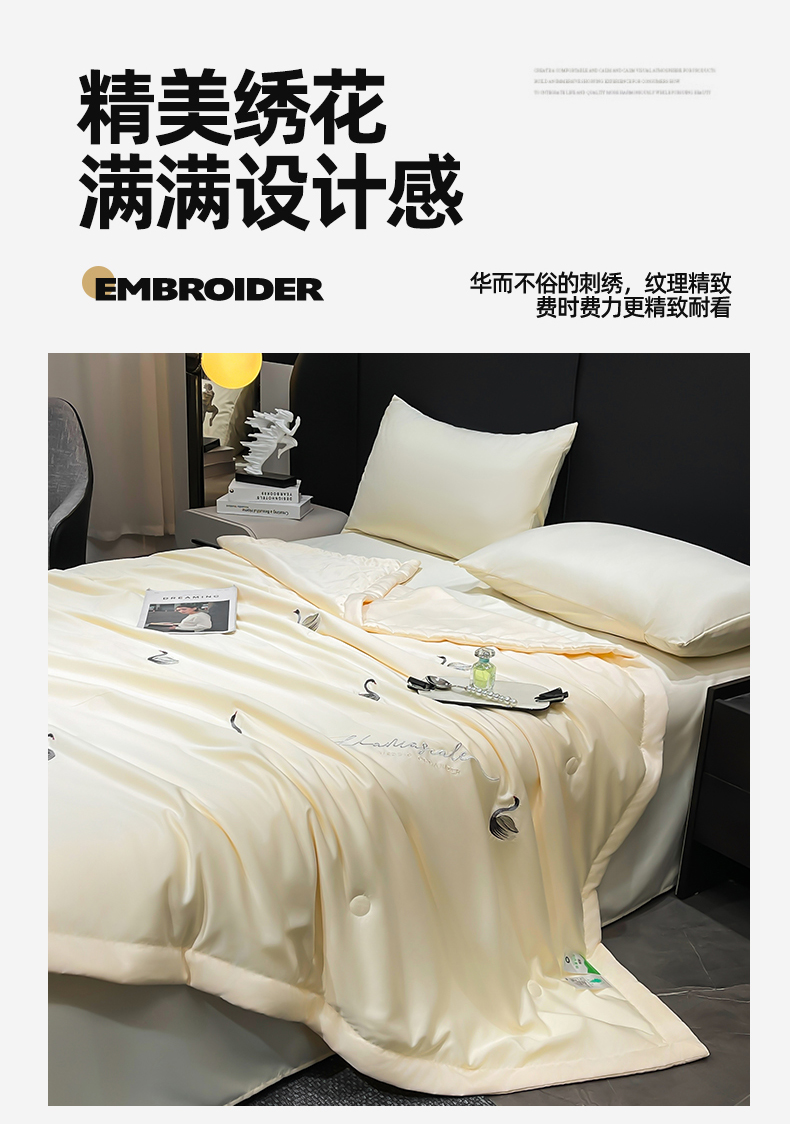 • 91家纺网 家纺一手货源 找家纺 梵蒂莎 2026新款满绣系列-水洗真丝空调被水洗冰丝夏被四件套夏凉被(需要买家秀,加微信) 天鹅-米白