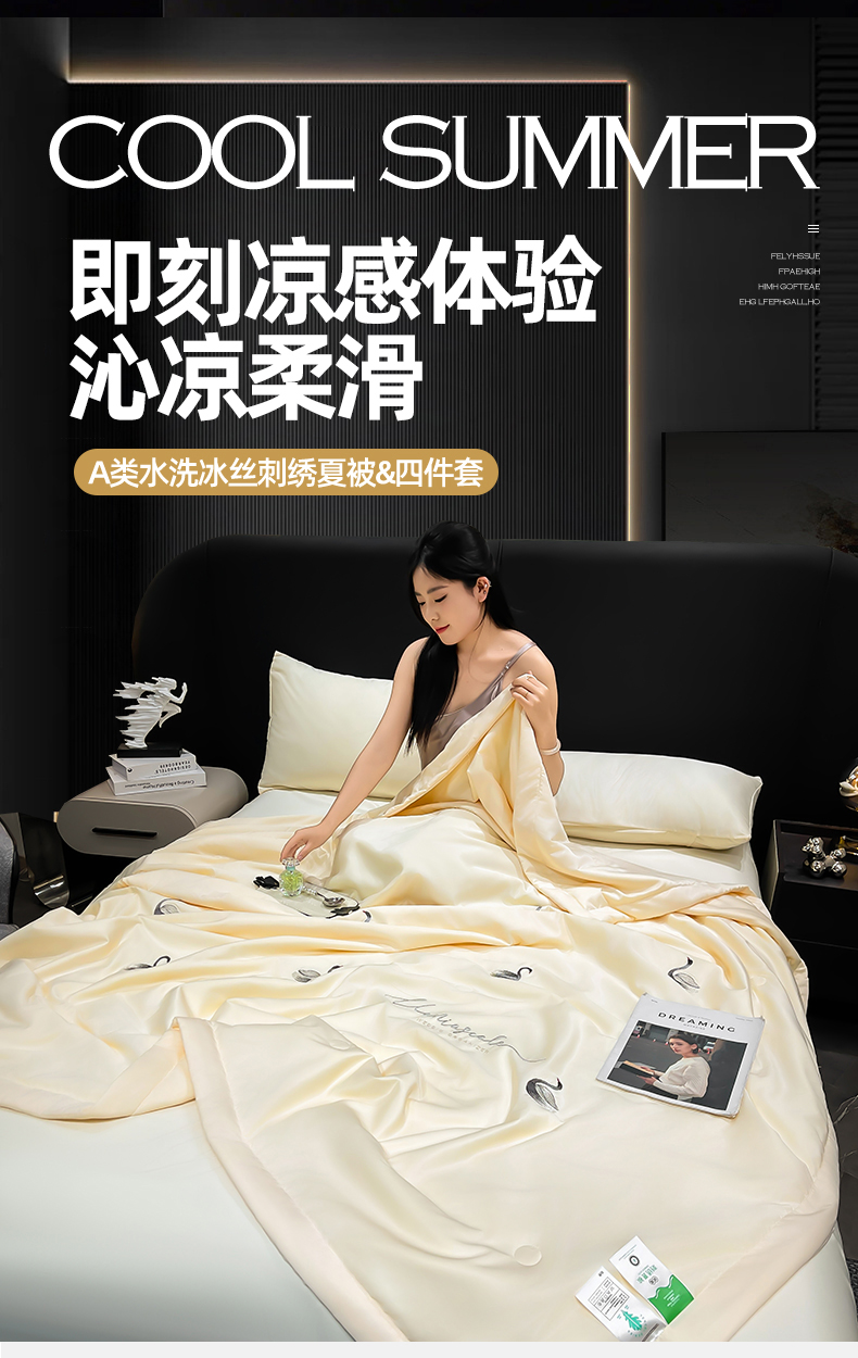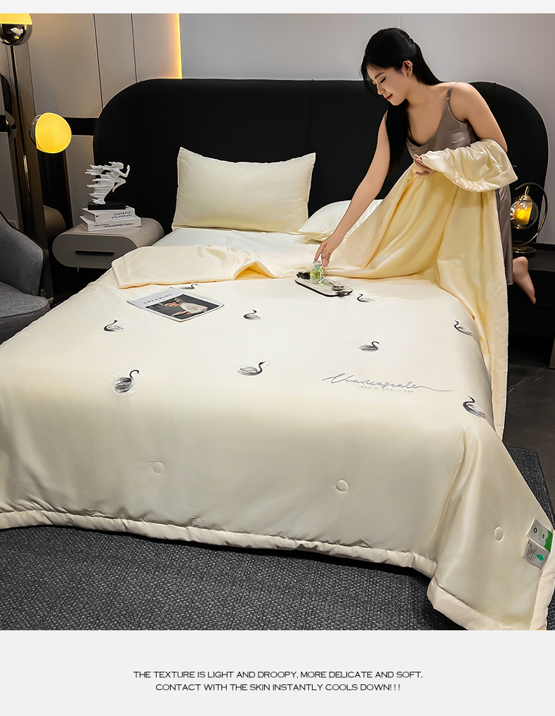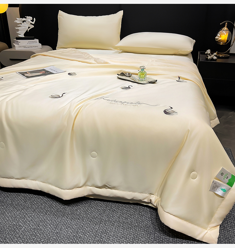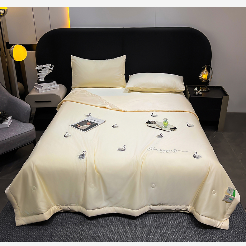 • 91家纺网 家纺一手货源 找家纺 梵蒂莎 2026新款满绣系列-水洗真丝空调被水洗冰丝夏被四件套夏凉被(需要买家秀,加微信) 天鹅-米白