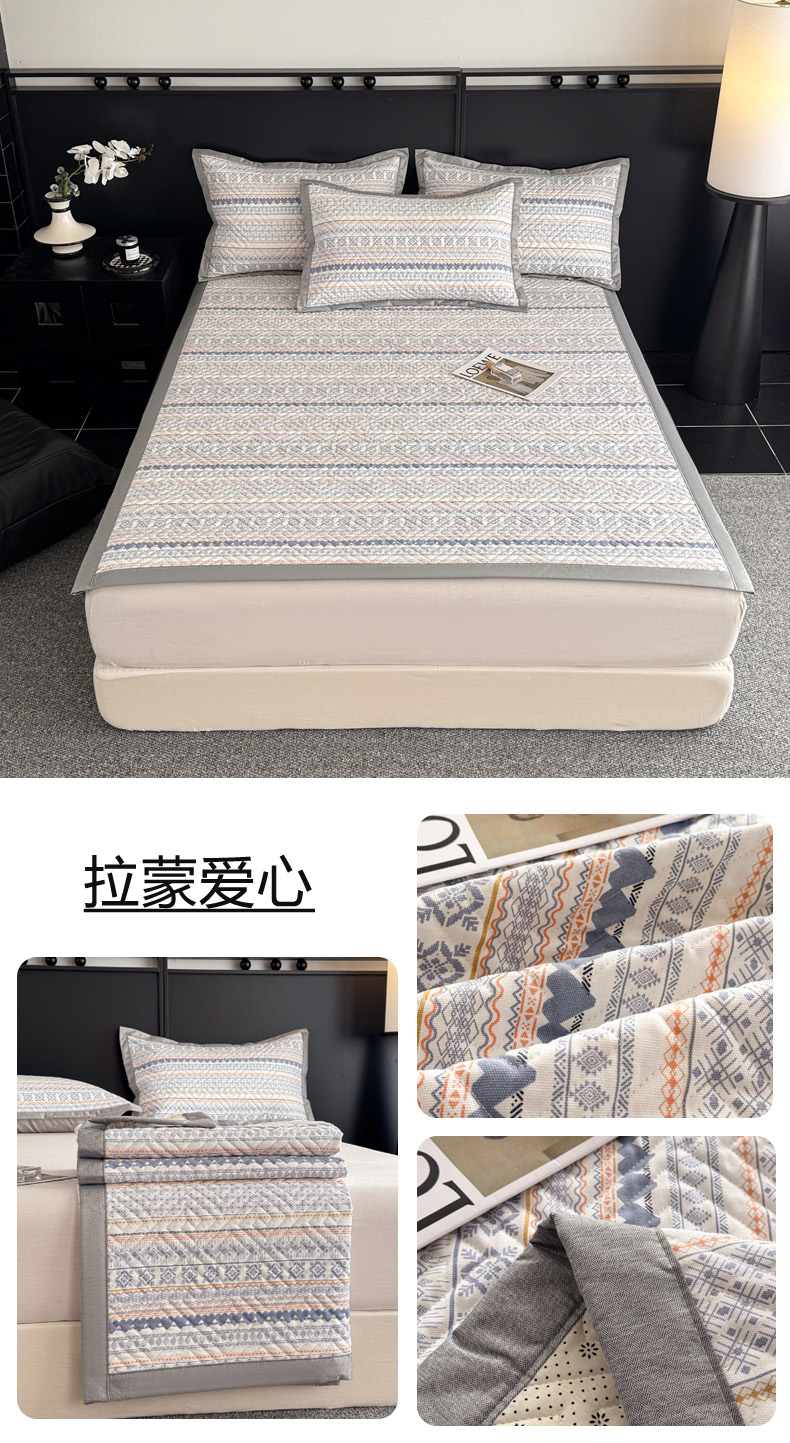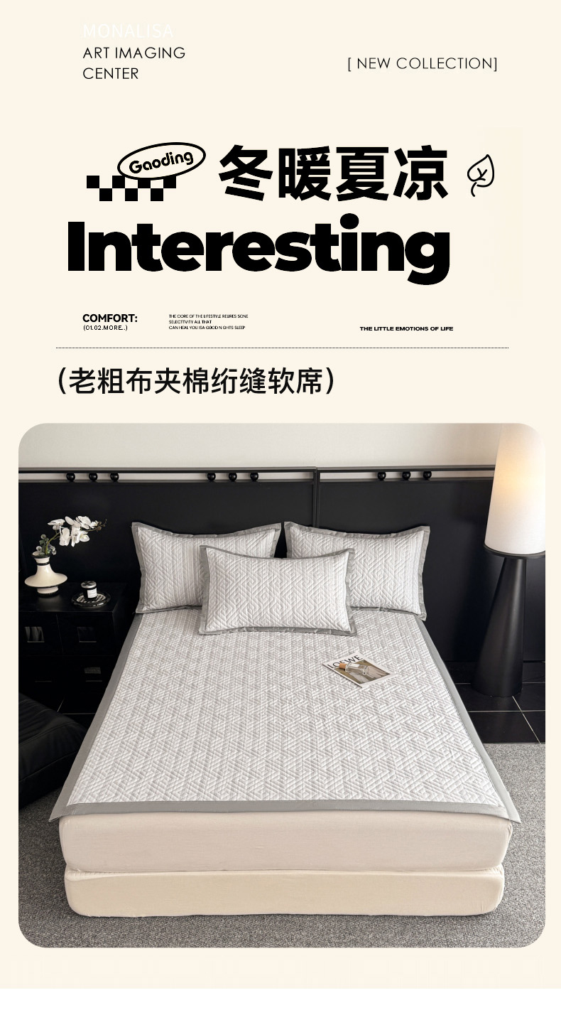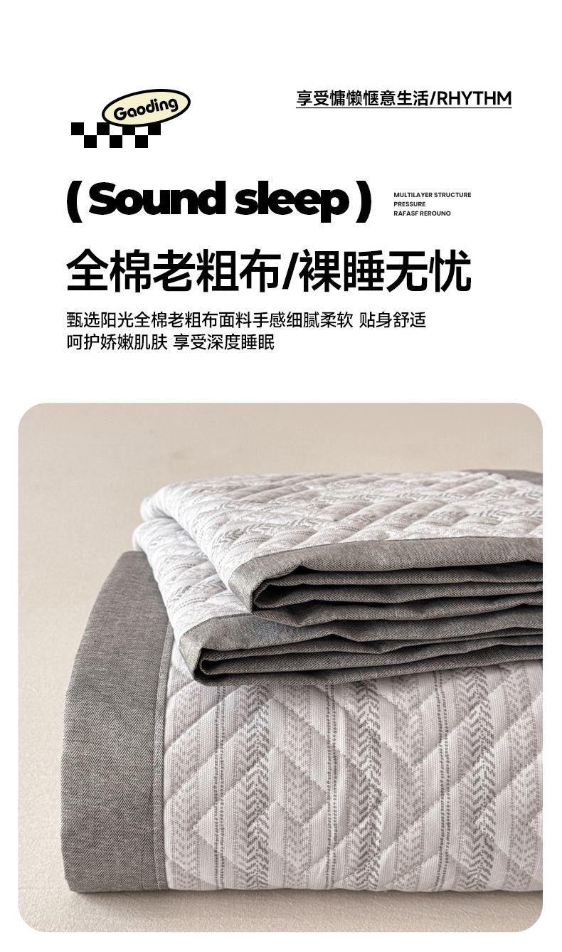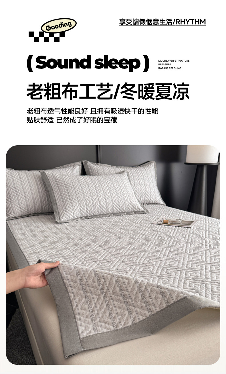 • 91家纺网 家纺一手货源 找家纺 慕尚家纺 2026新款百百棉全棉纯棉床席老粗布凉席席子 简希 米灰