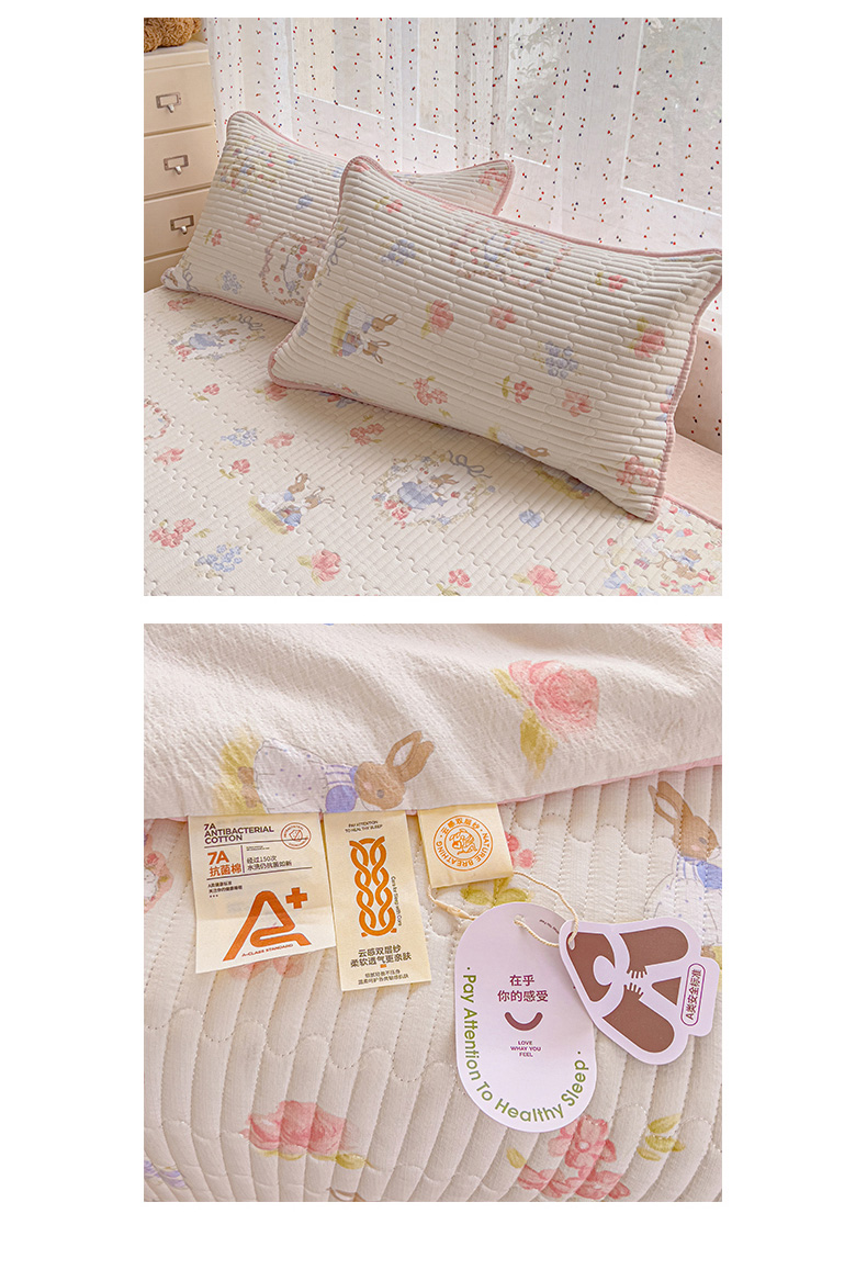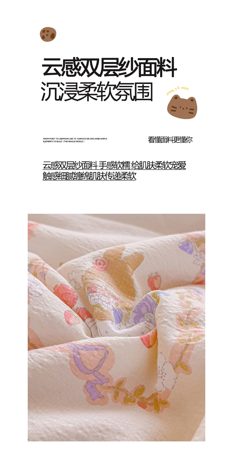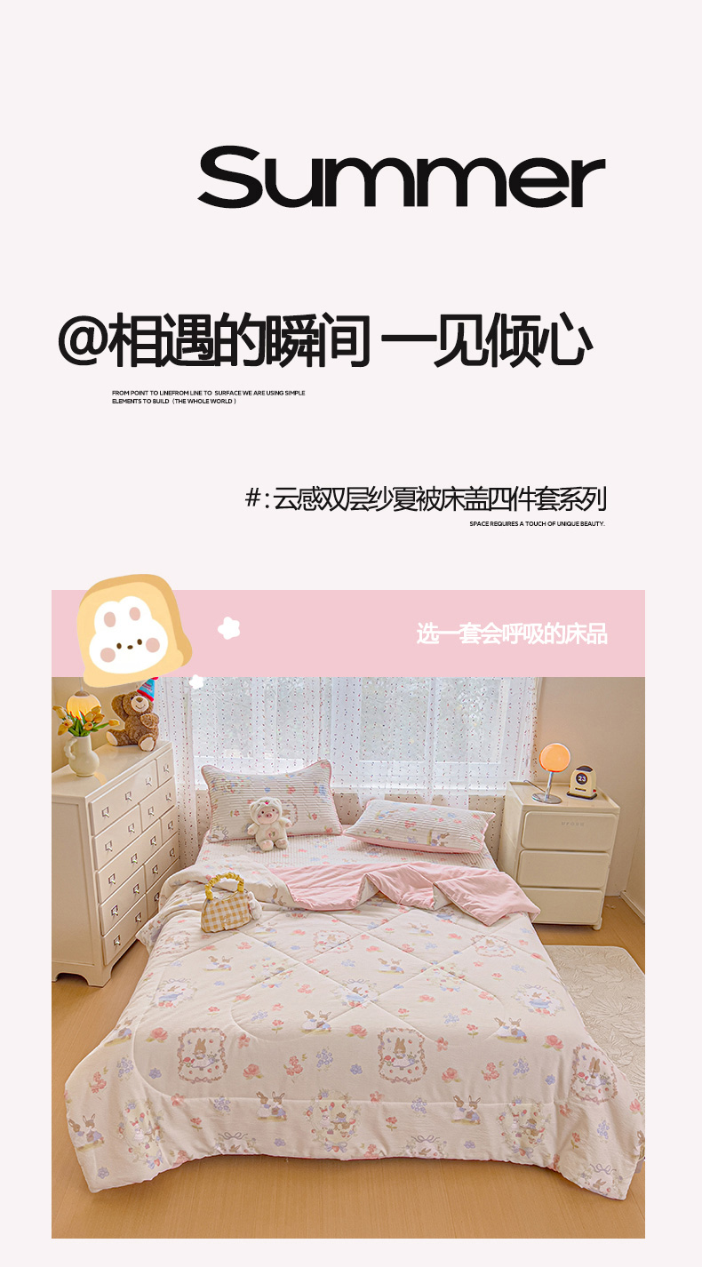 • 91家纺网 家纺一手货源 找家纺 几禾 2026新款云感双层纱7A抗菌夏被四件套系列-栀夏系列 栀夏-镜子里的兔