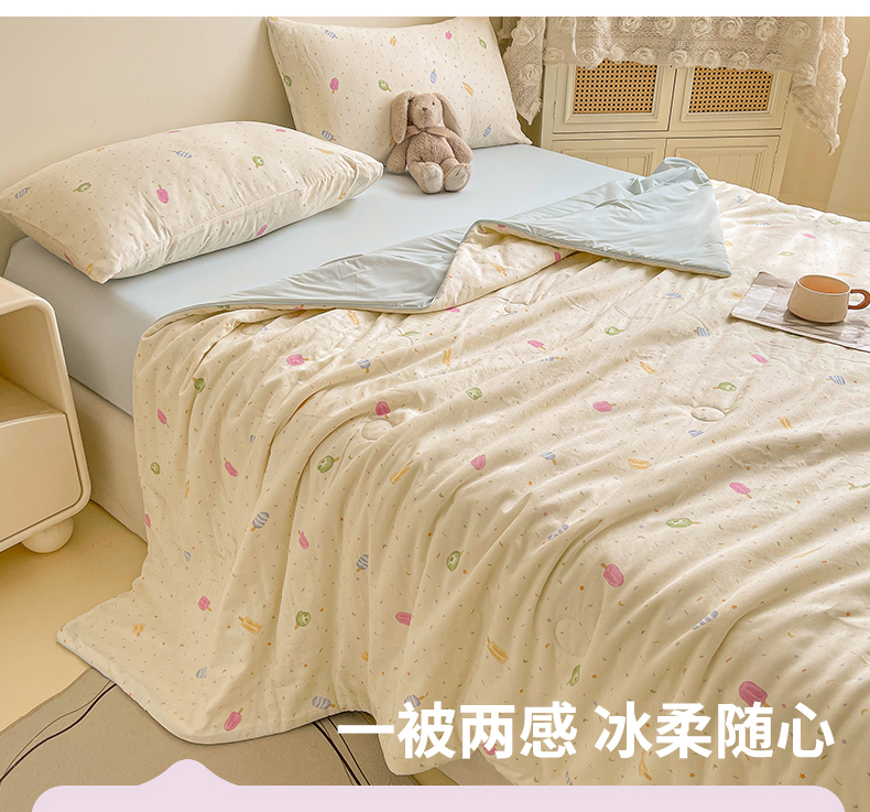 • 91家纺网 家纺一手货源 找家纺 小禹仔家纺 2026新款A类印花双层纱凉感大豆夏被 棒棒冰