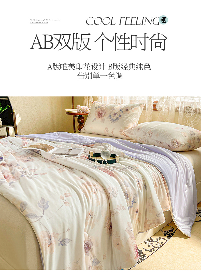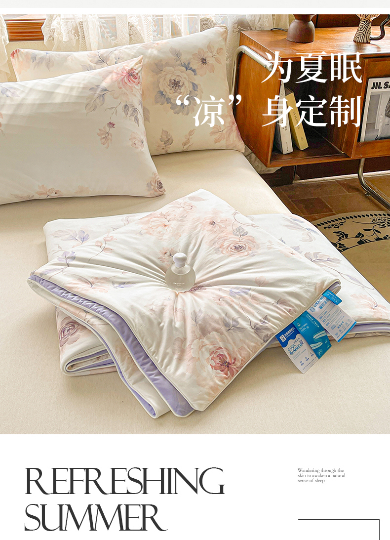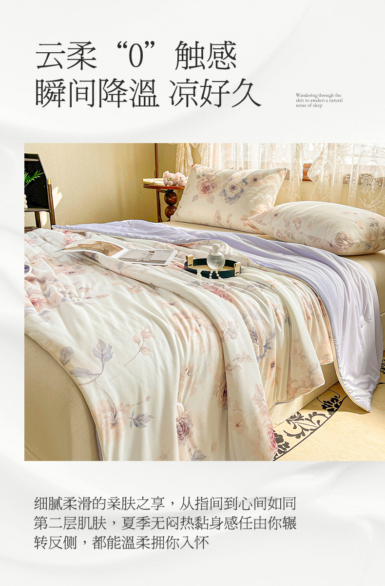 (总)小禹仔家纺 2026新款氨纶凉感印花夏被,夏瑶绿,半山花,风荷举,花陌语,曼莎,木绵芙,沐野,晴川,樱絮,櫻绯雨,薄荷绿,冰感粉,冰感粉拼薄荷绿,藏青拼天空蓝,米色,天空蓝,天空蓝拼米色,烟云灰,烟云灰拼浅灰,优雅紫
