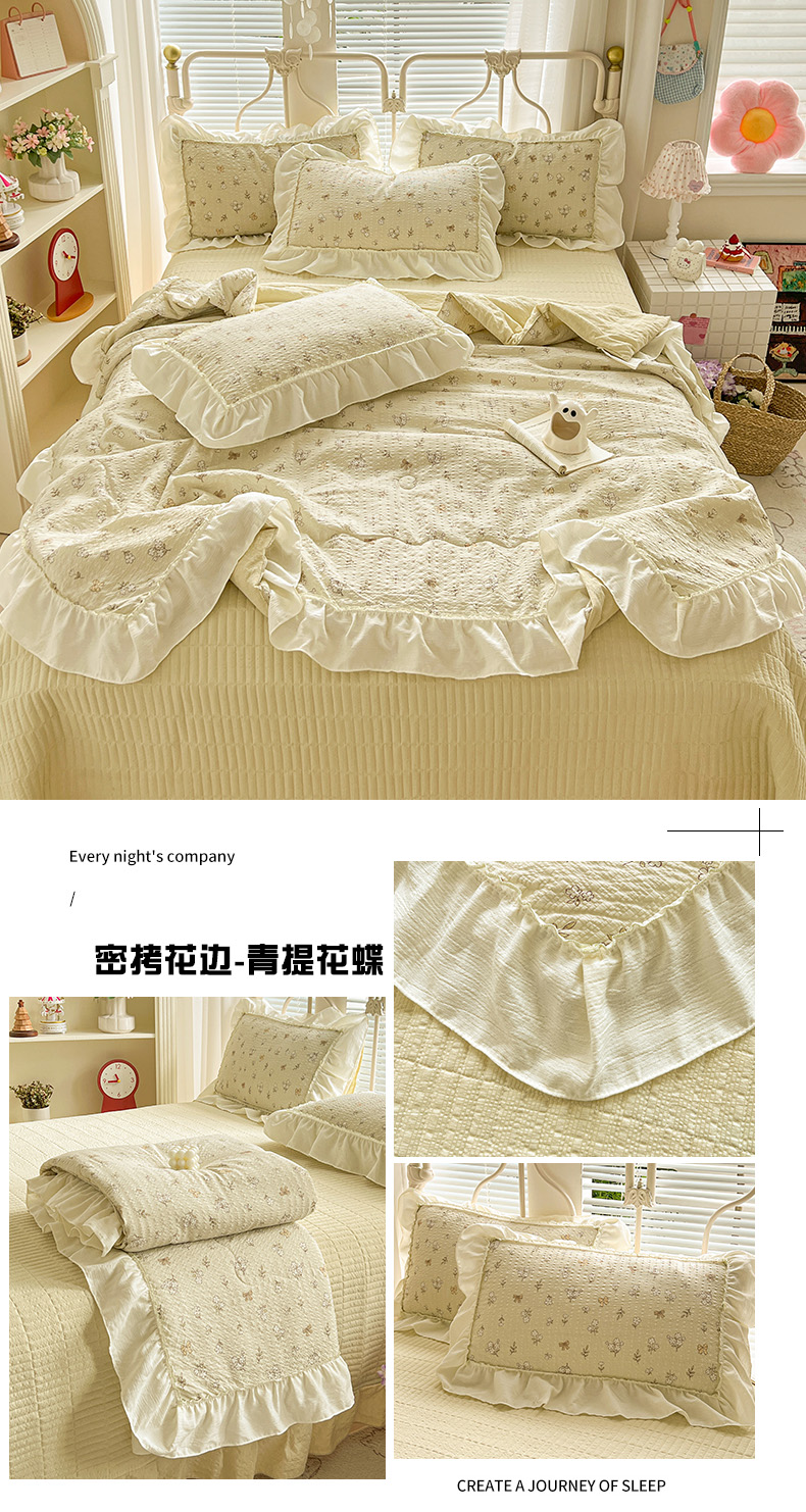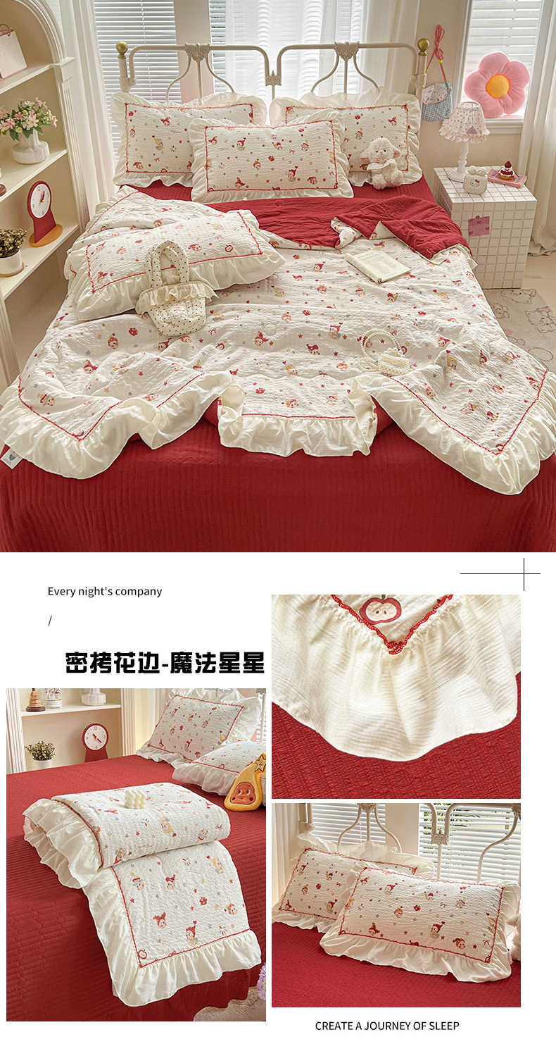 当前位置: 91家纺网 > 商品网购 > 床品套件 > 四件套 > 夏被四件套 > 富米莱(原臻工厂) 2026新款超温柔高弹线密拷花边款泡芙双层纱夏凉被床盖床裙四件套 密拷花边-魔法星星