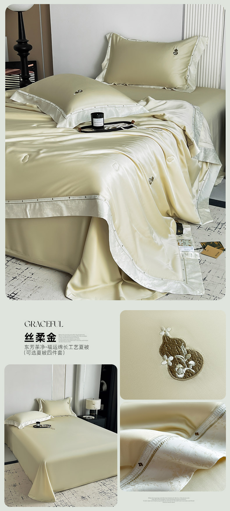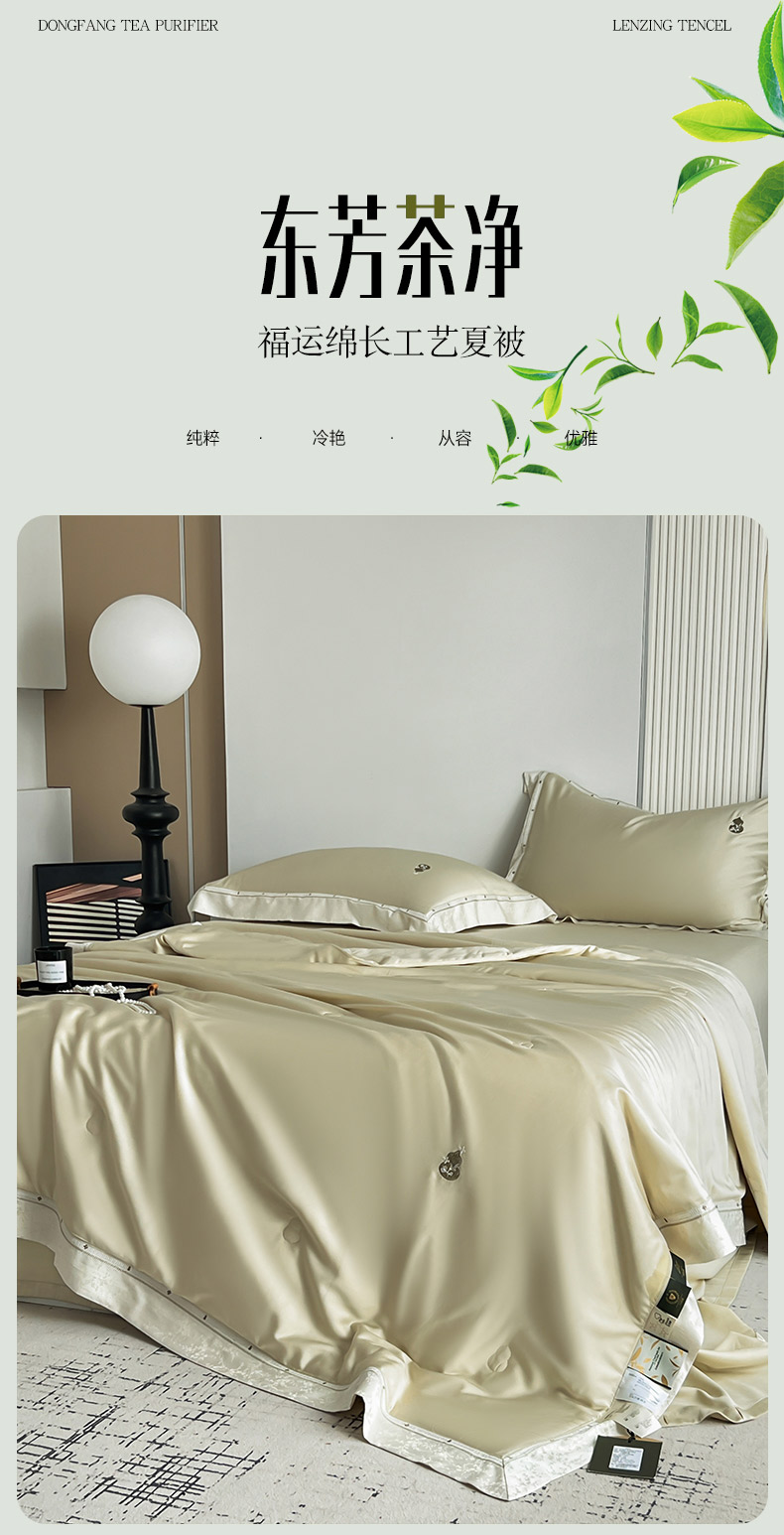 (总)桂雅居 2026新款东芳茶净--福运绵长工艺夏被被子被芯,丝柔绿,丝柔粉,丝柔灰,丝柔金,组合
