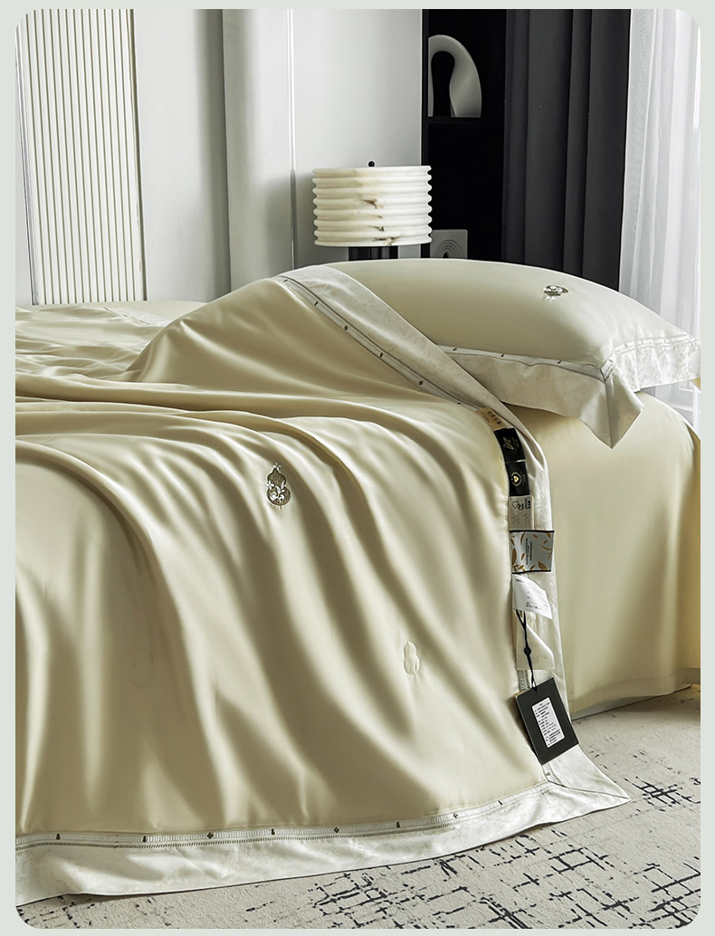 (总)桂雅居家纺 2026新款百支天丝(酵素水洗工艺)-维纳斯法式女神被(单夏被充值会员-15,夏被四件套充值会员-20,送精美包装),洛黄,斯卡其灰,温柔粉,悦白,组合