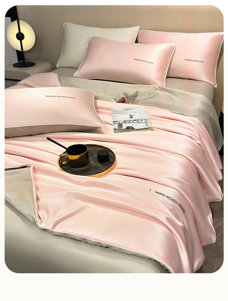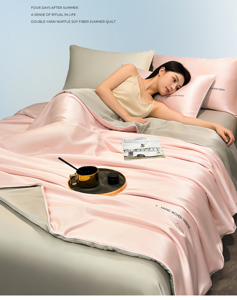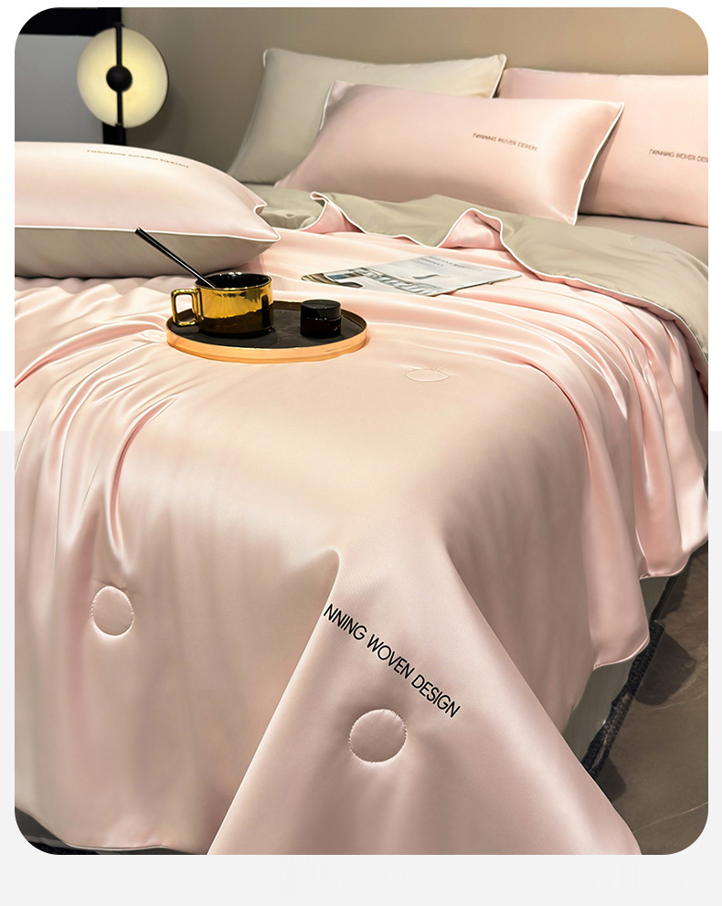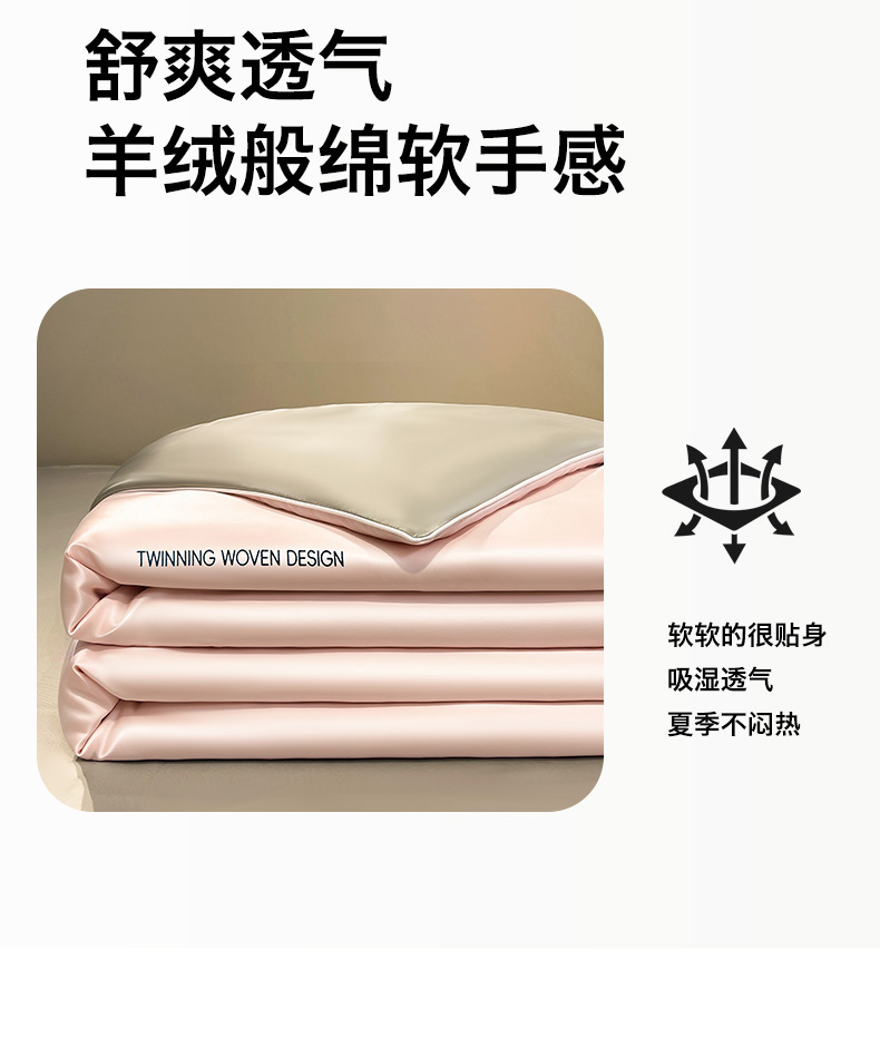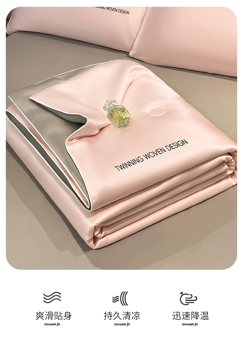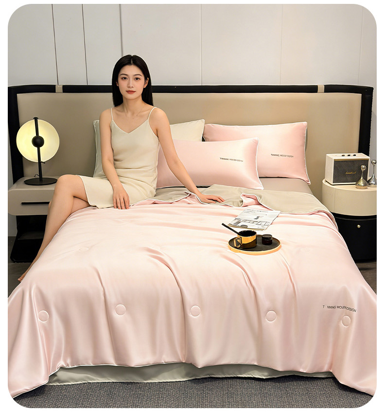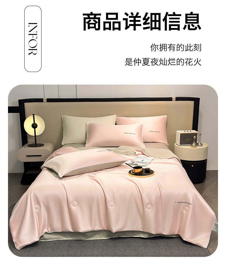 • 91家纺网 家纺一手货源 找家纺 招财星家纺 2026新款可水洗真丝被夏天空调被单人夏凉被冰丝夏被被子双人薄被(带质检报告买家秀) 丝语-粉玉+银灰
