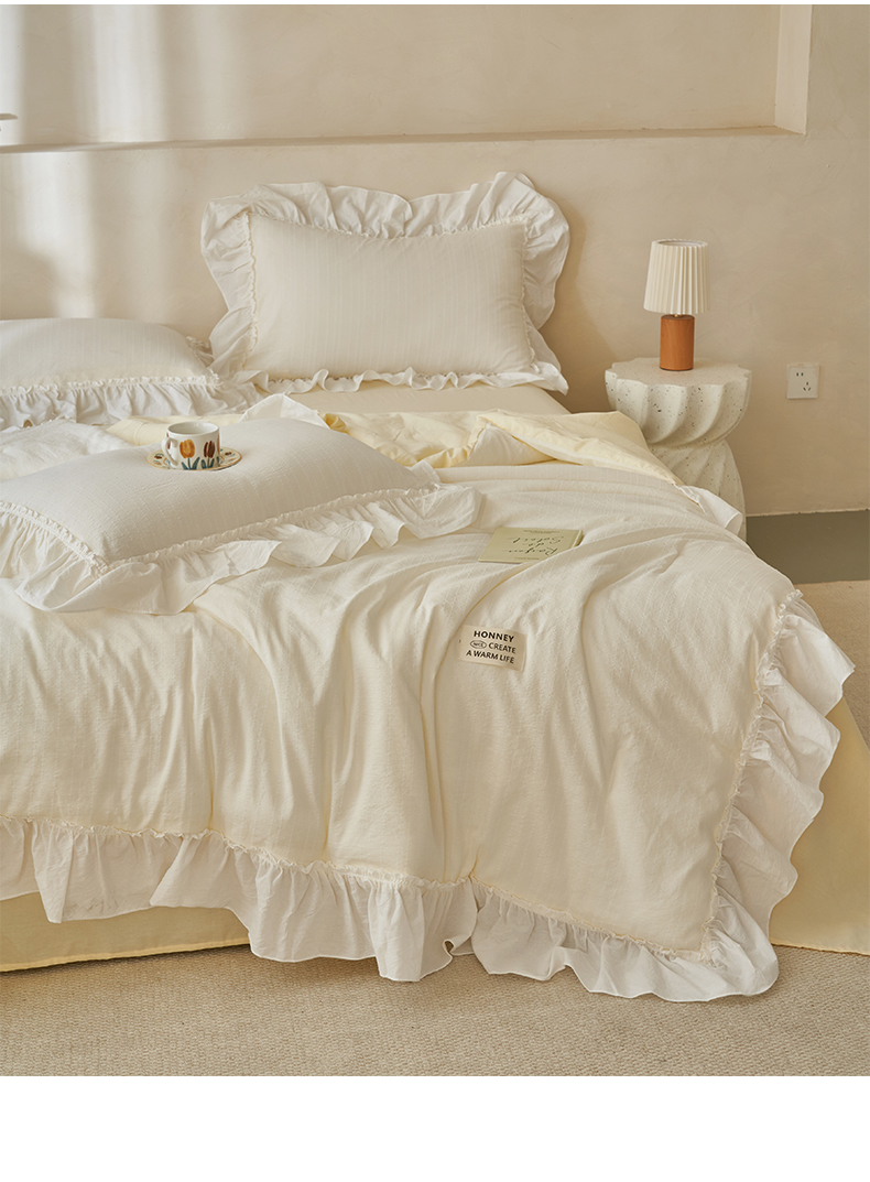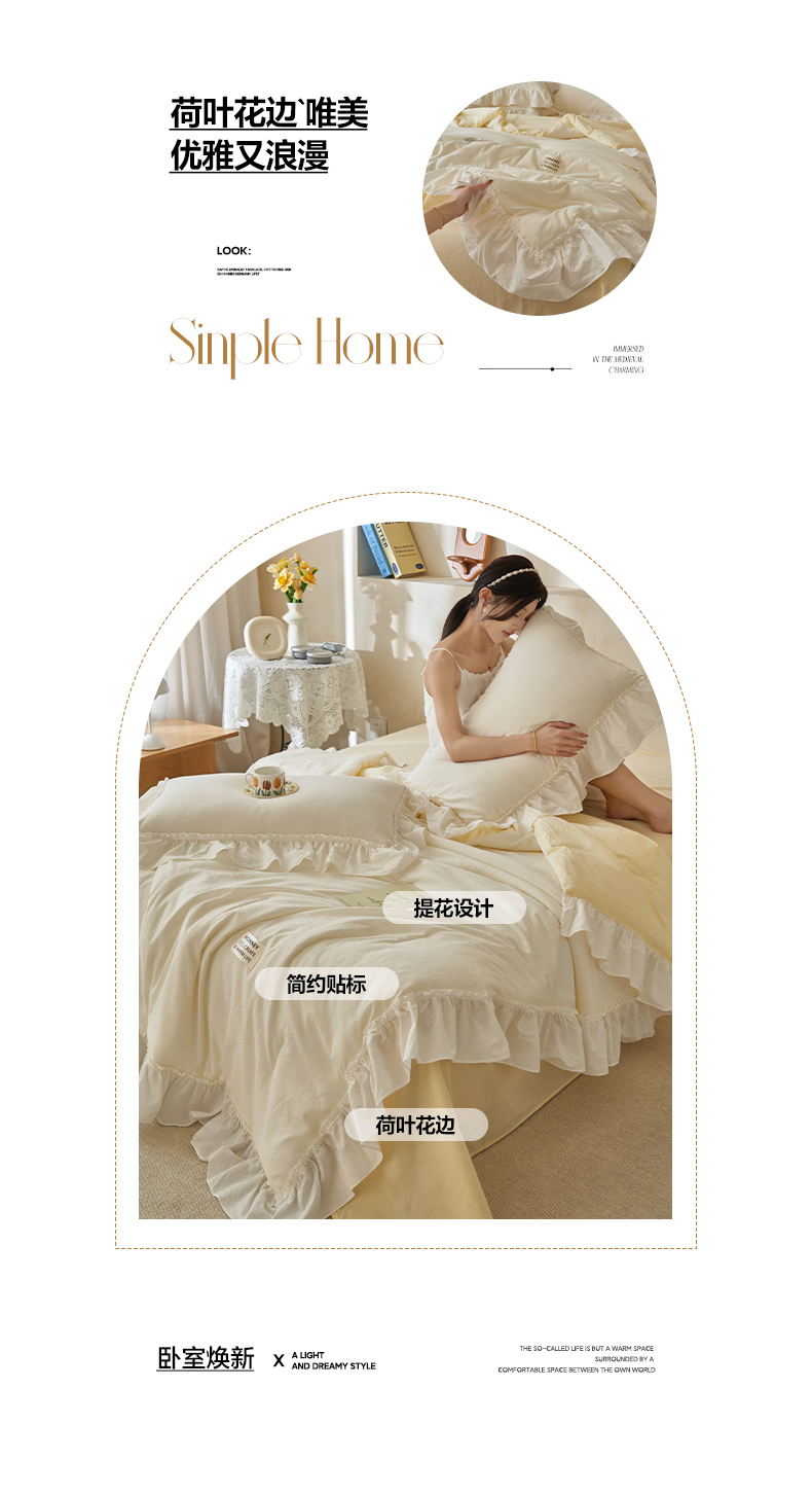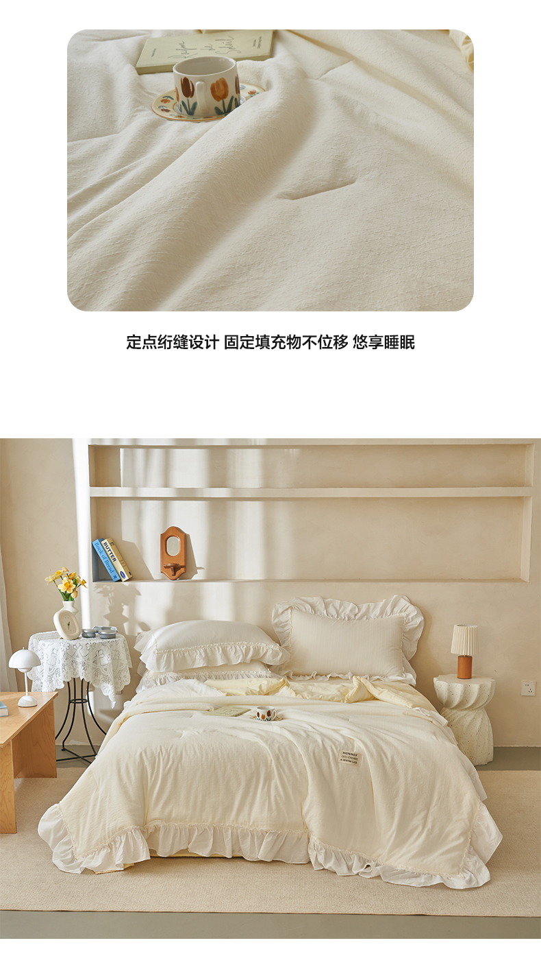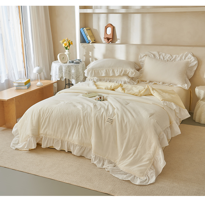 当前位置: 91家纺网 > 商品网购 > 床品套件 > 四件套 > 夏被四件套 > 晨曦家纺 2026新款荷叶花边泡芙纱提花夏凉被四件套可水洗棉夏被四件套少女风 黄油奶芙