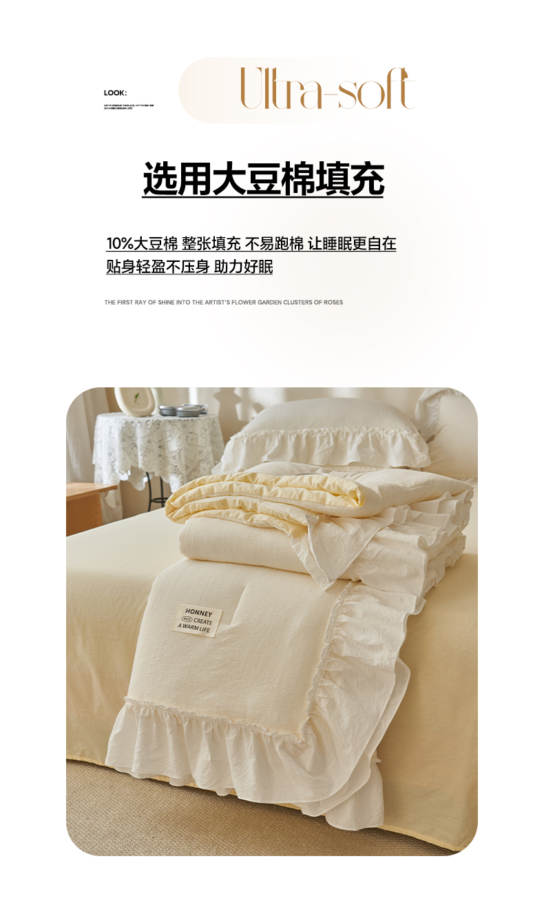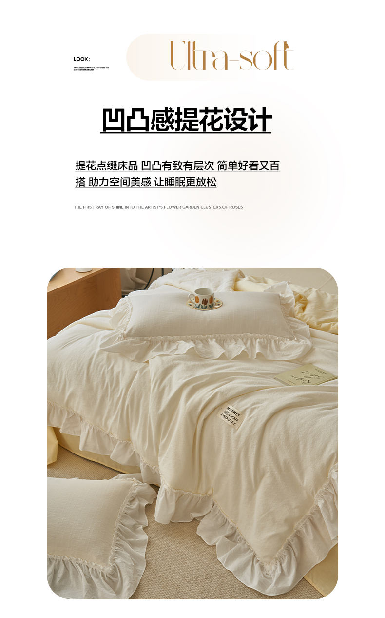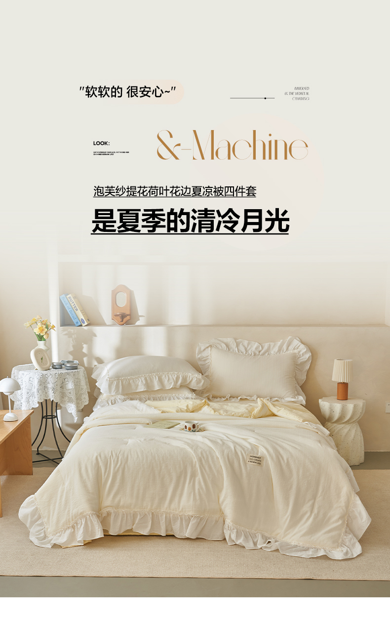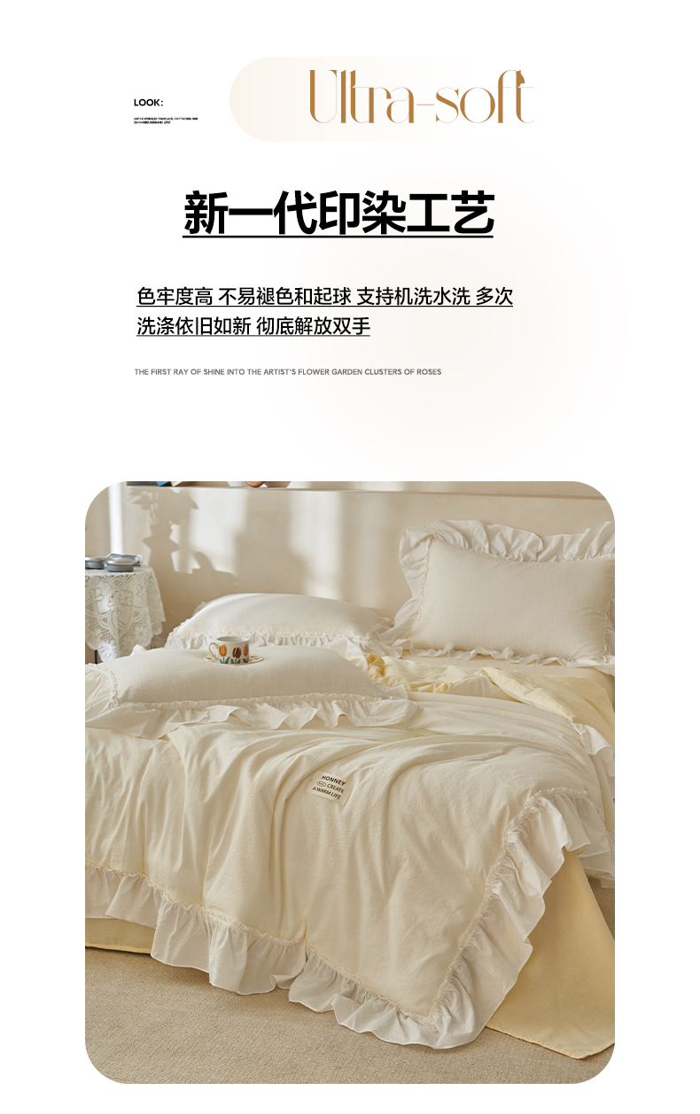 当前位置: 91家纺网 > 商品网购 > 床品套件 > 四件套 > 夏被四件套 > 晨曦家纺 2026新款荷叶花边泡芙纱提花夏凉被四件套可水洗棉夏被四件套少女风 黄油奶芙