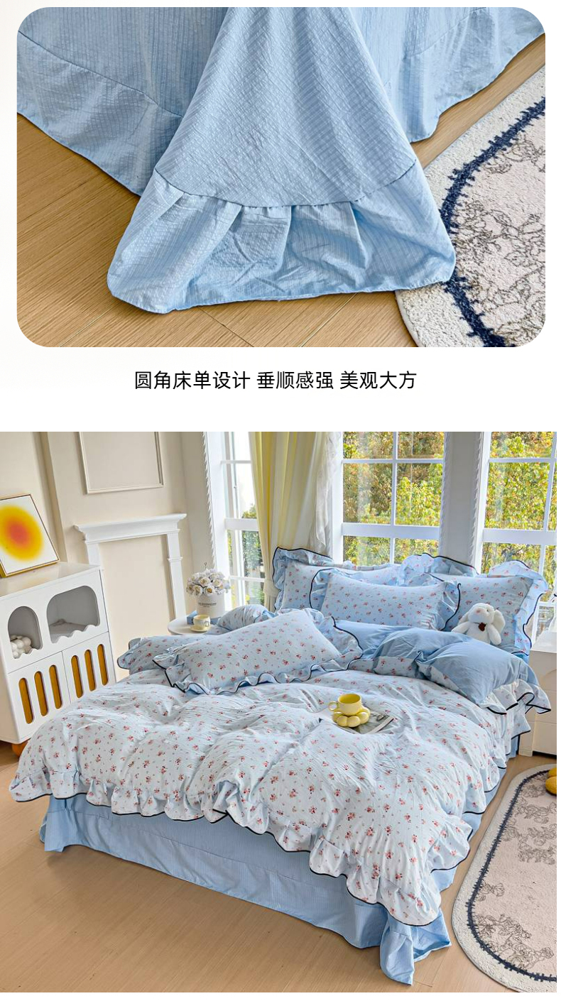 当前位置: 91家纺网 > 商品网购 > 床品套件 > 四件套 > 其它四件套 > 找底底家纺 2026新款A类泡泡棉双层纱四件套花边夏被四件套 花沐