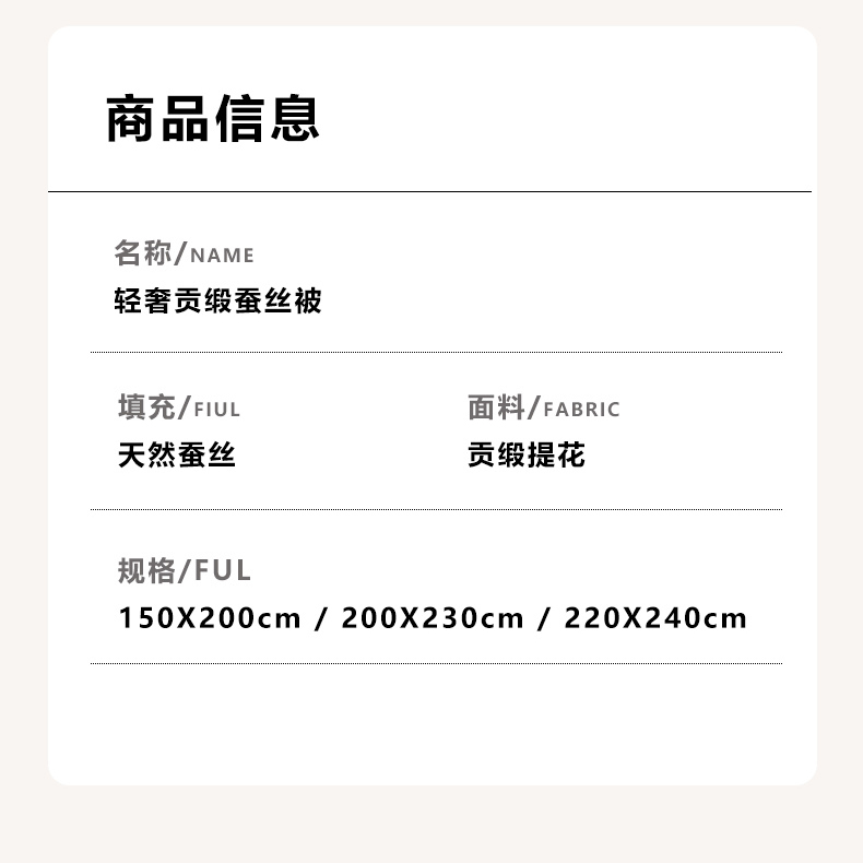 商品名称:(总)欧雅搁家纺 2026新款贡缎提花蚕丝被100%蚕丝夏被夏凉被空调被薄被子(包检测)