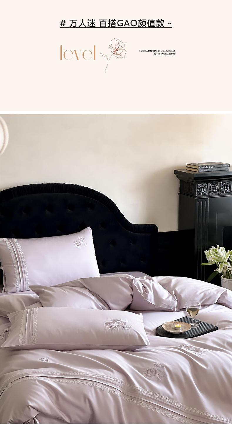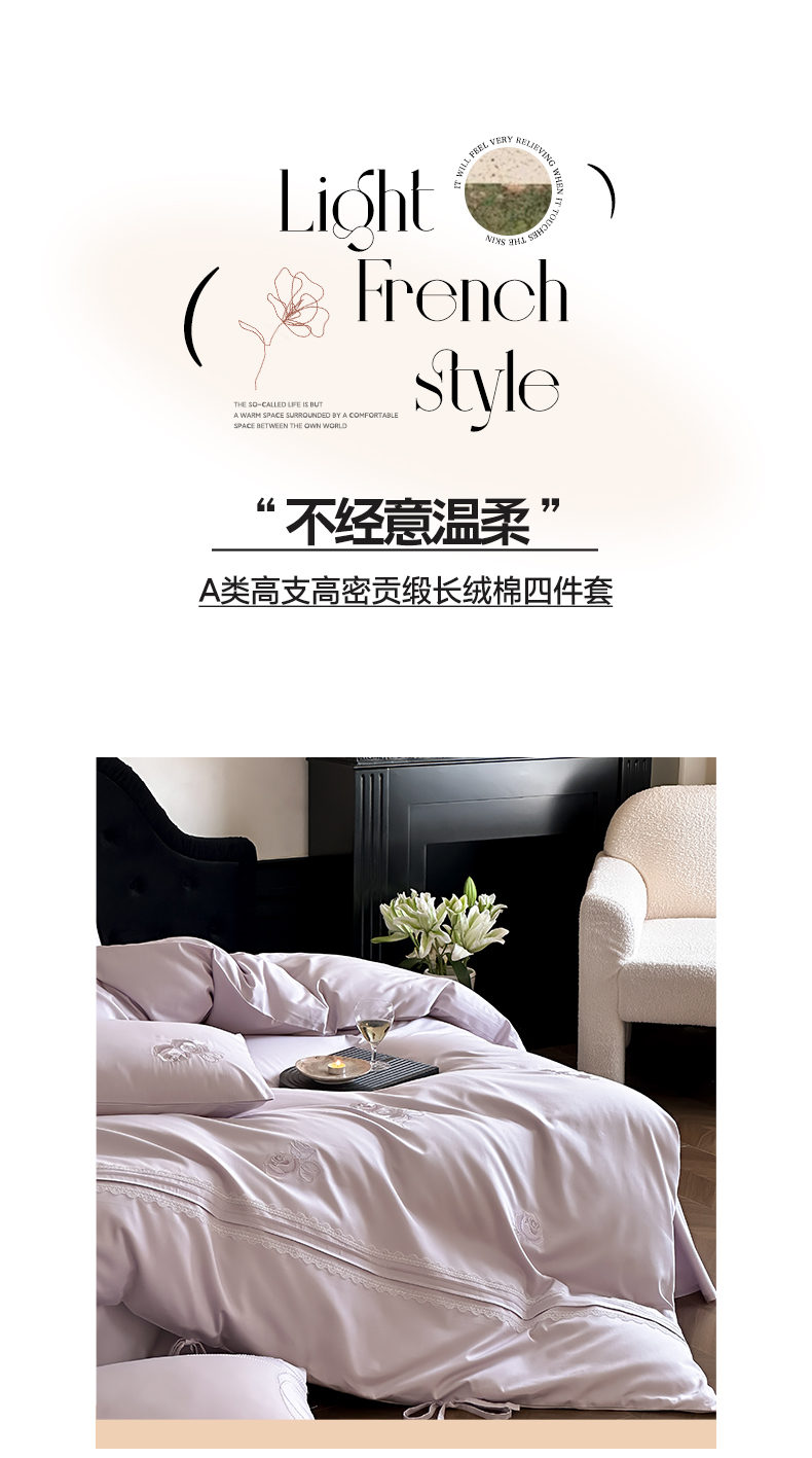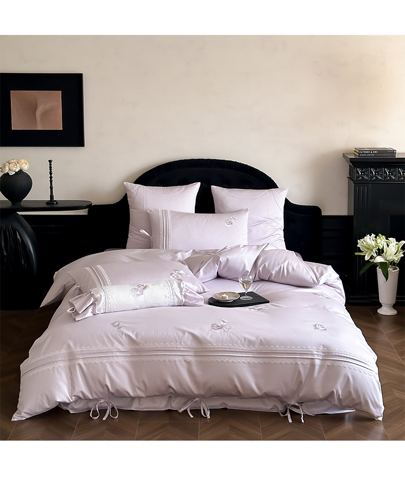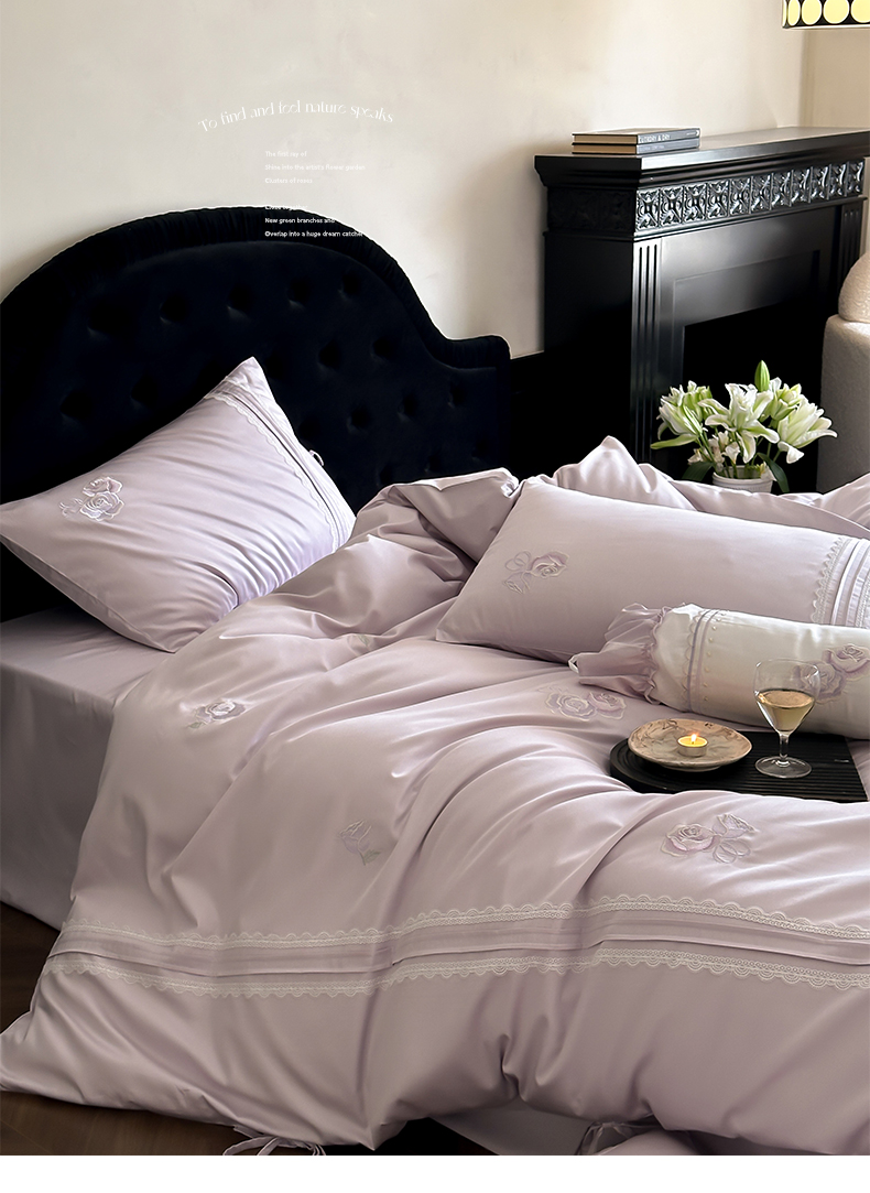 (总)树下 2026新款A类100支50S双股刺绣高支高密贡缎长绒棉四件套-柔堇,柔堇-紫,柔堇-粉