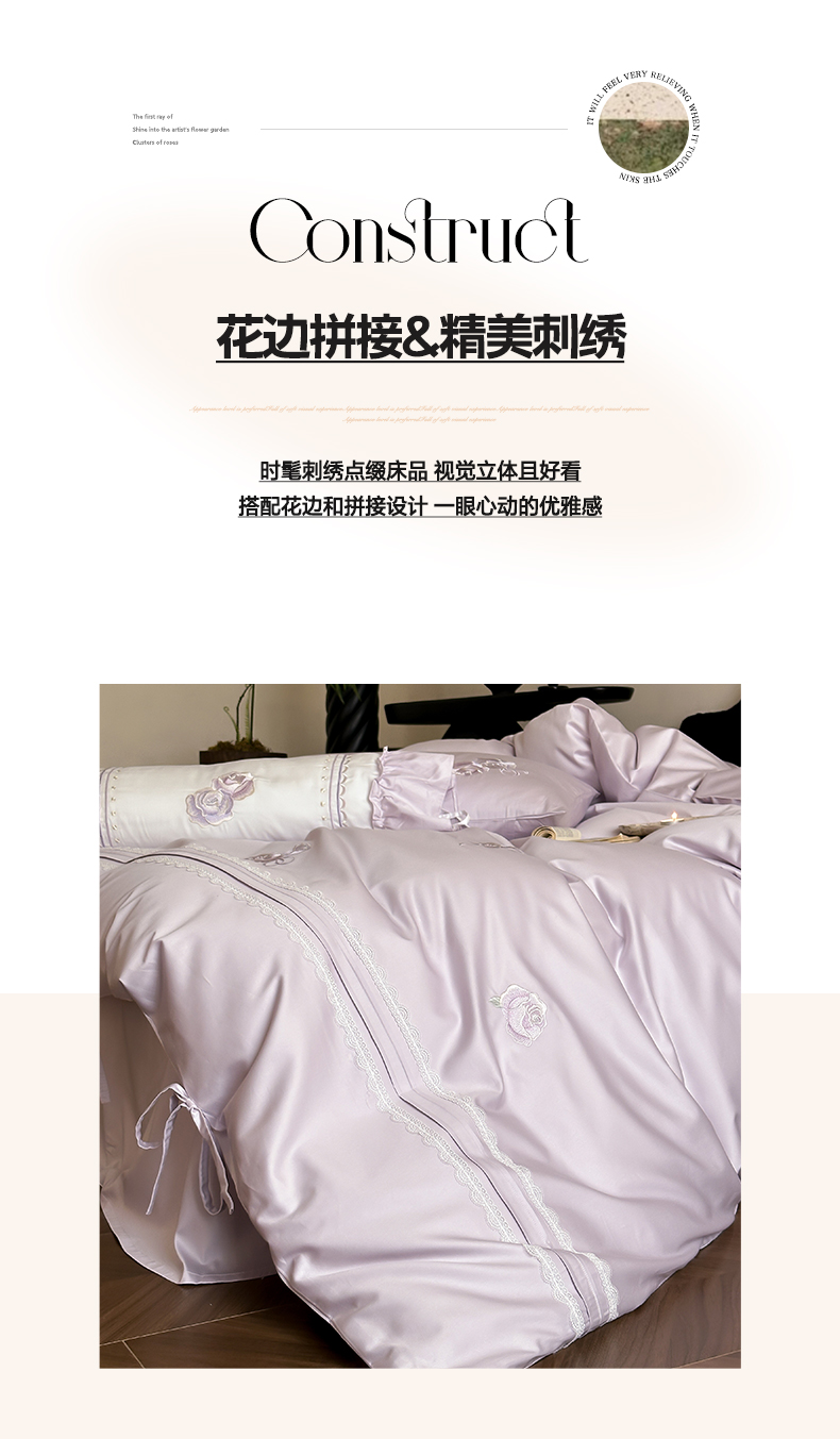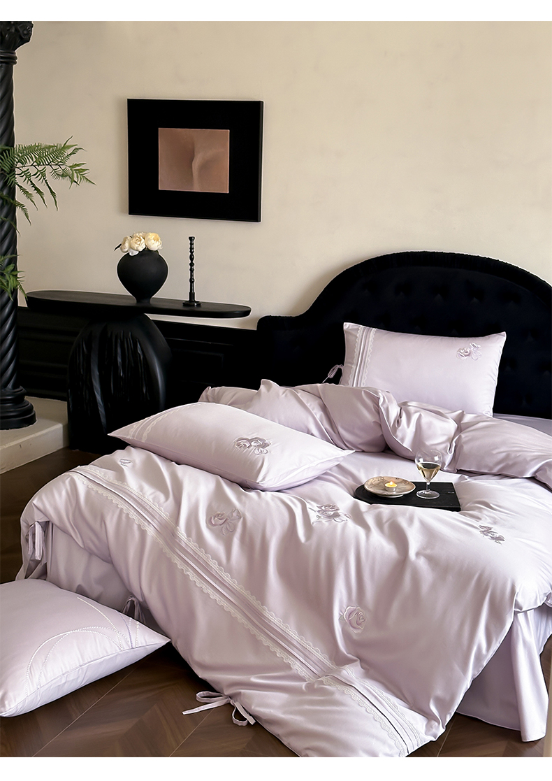 商品名称:树下 2026新款A类100支50S双股刺绣高支高密贡缎长绒棉四件套-柔堇 柔堇-紫
