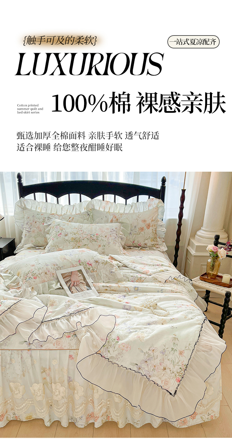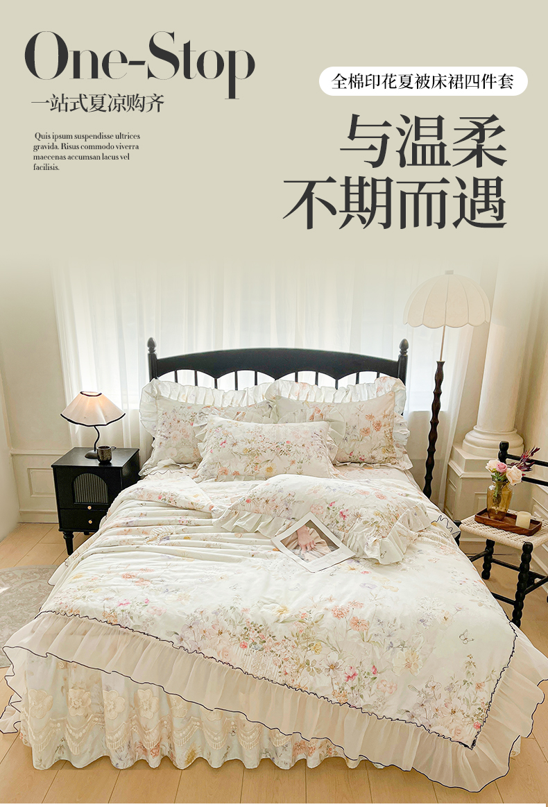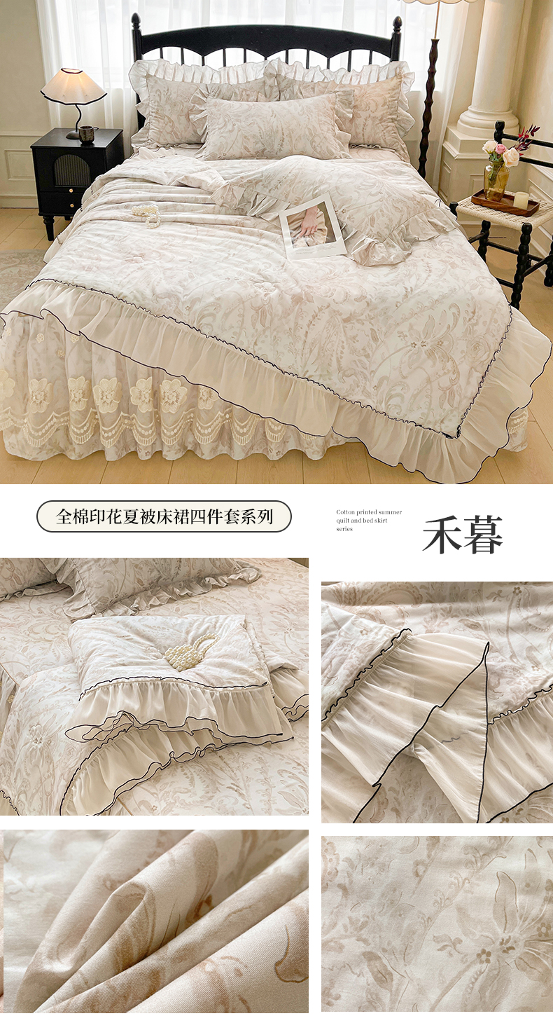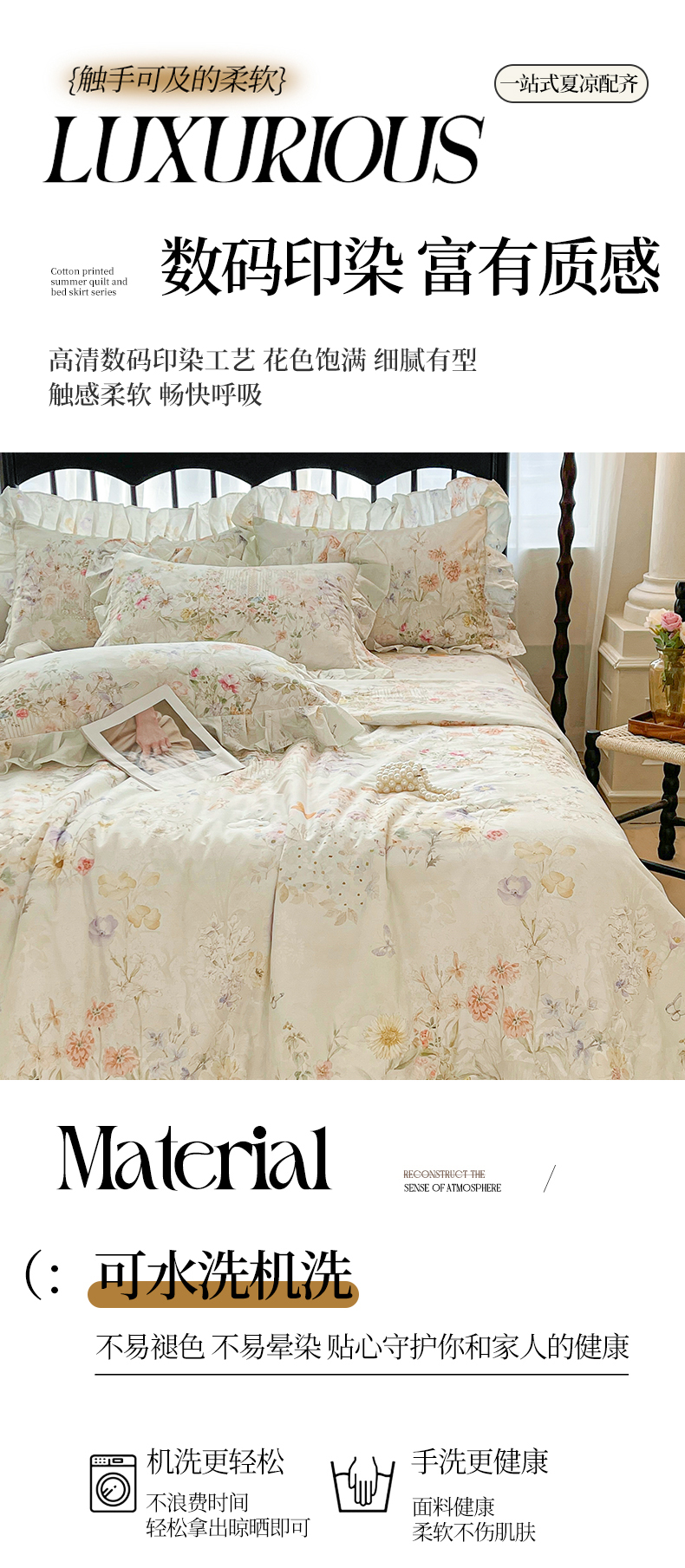 宜凡家纺 2026新款全棉数码印花夏被床裙四件套②号系列 春旭