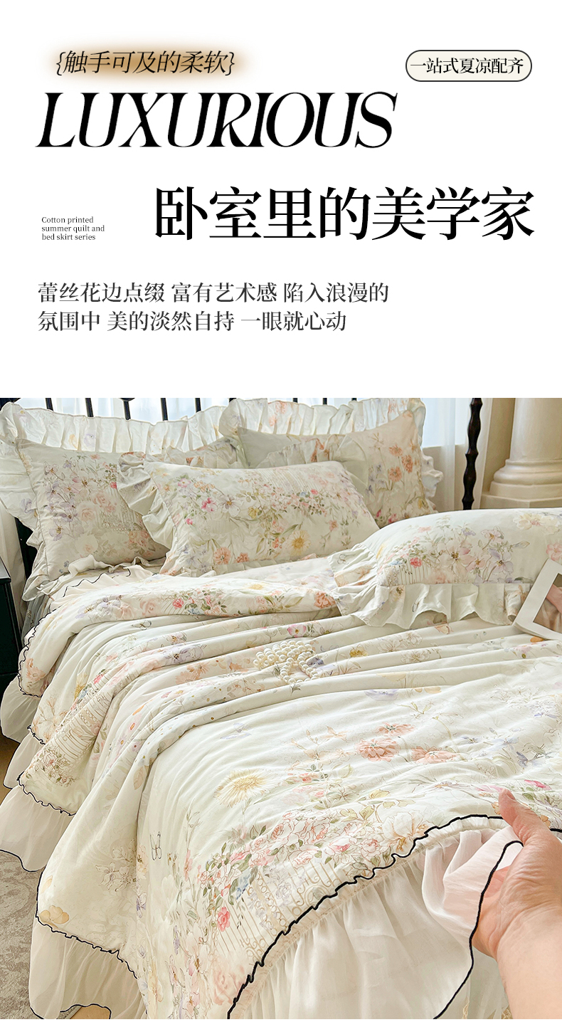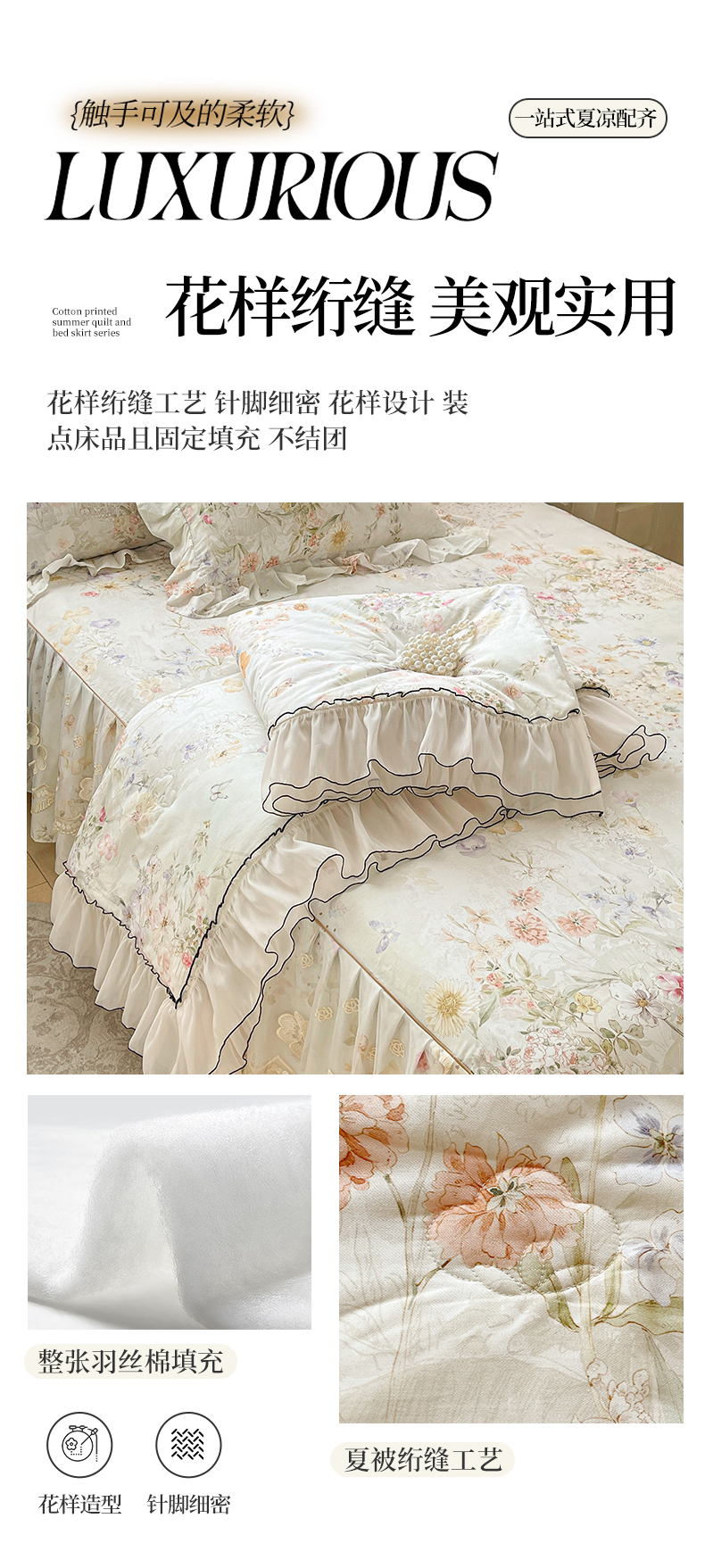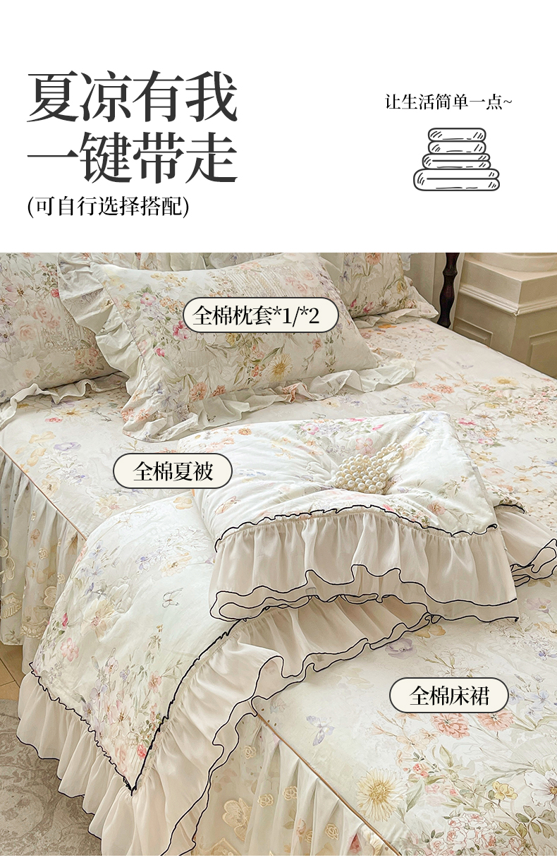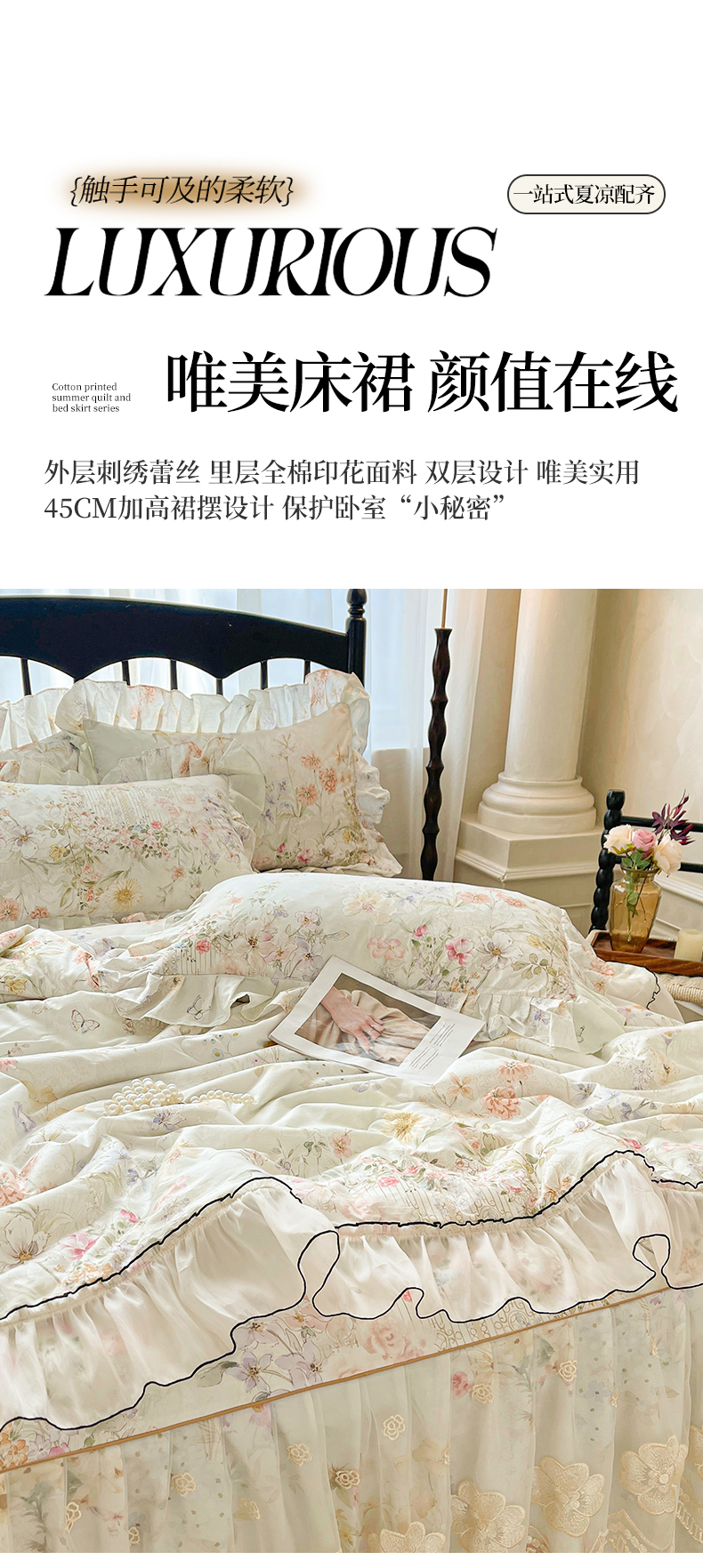宜凡家纺 2026新款全棉数码印花夏被床裙四件套②号系列 春旭