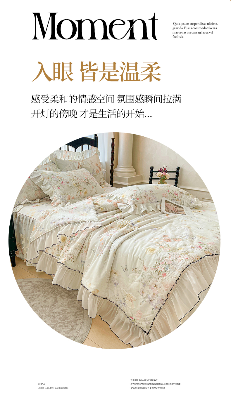 (总)宜凡家纺 2025新款全棉数码印花床裙四件套系列二,繁花似锦,春景熙熙,花间密语,花间柔光,满芯花溪,迷离夜色,婉如初见,雪域森林