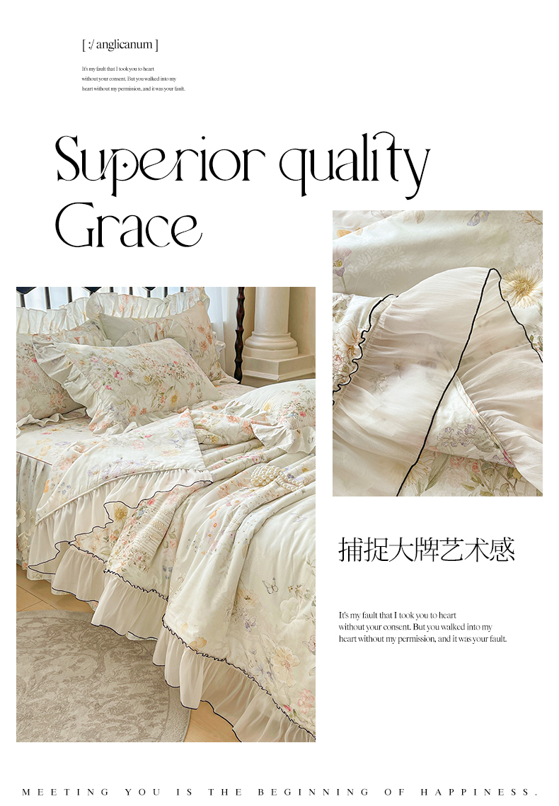 (总)宜凡家纺 2025新款全棉数码印花床裙四件套系列一,静若幽兰,浮云织梦,梦幻花园,陌上花开