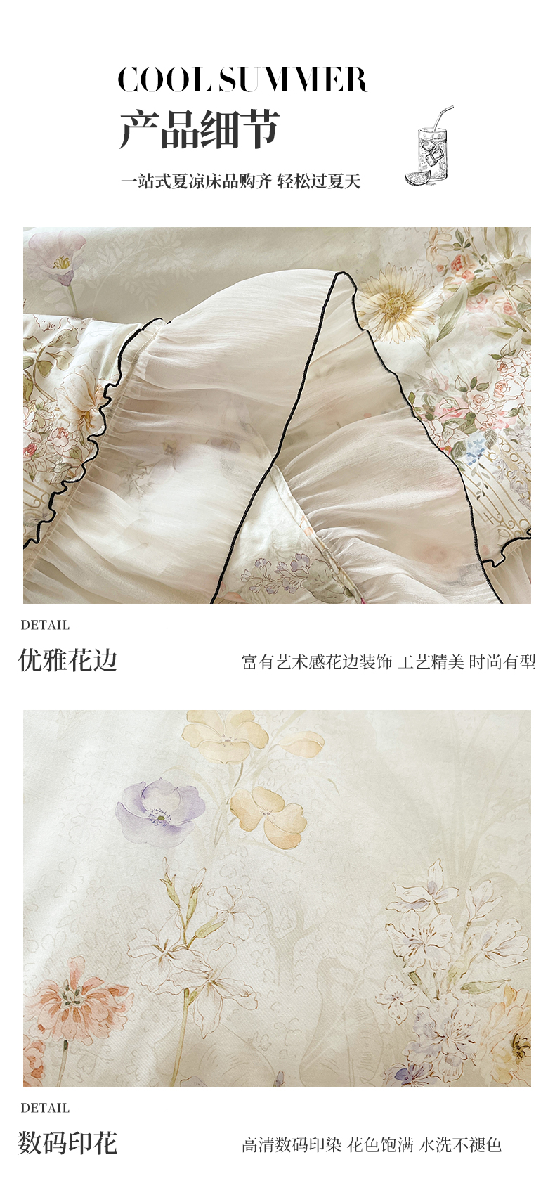 商品名称:宜凡家纺 2026新款全棉数码印花夏被床裙四件套②号系列 春旭