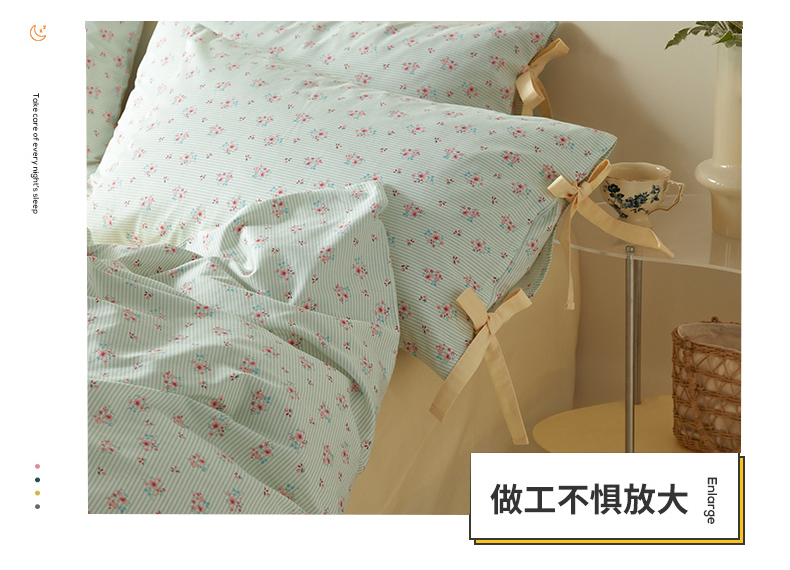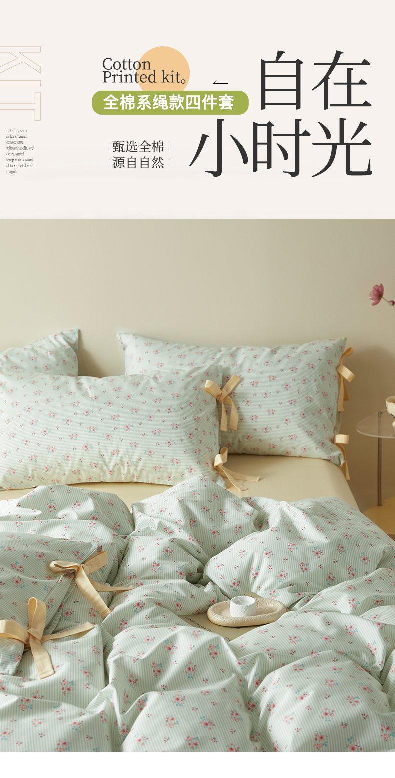 (总)绫韵家纺 2026新款13372全棉ins小碎花纯棉田园风床单床笠四件套系绳蝴蝶结系列二,布洛尔,白兰地,碎花小熊,妃子笑黄-松霜绿,露娜-风信紫,蔓春-风信紫,晴天-海棠红,汀兰-海港蓝,仙子-松霜绿,小花兔-海棠红,元气兰