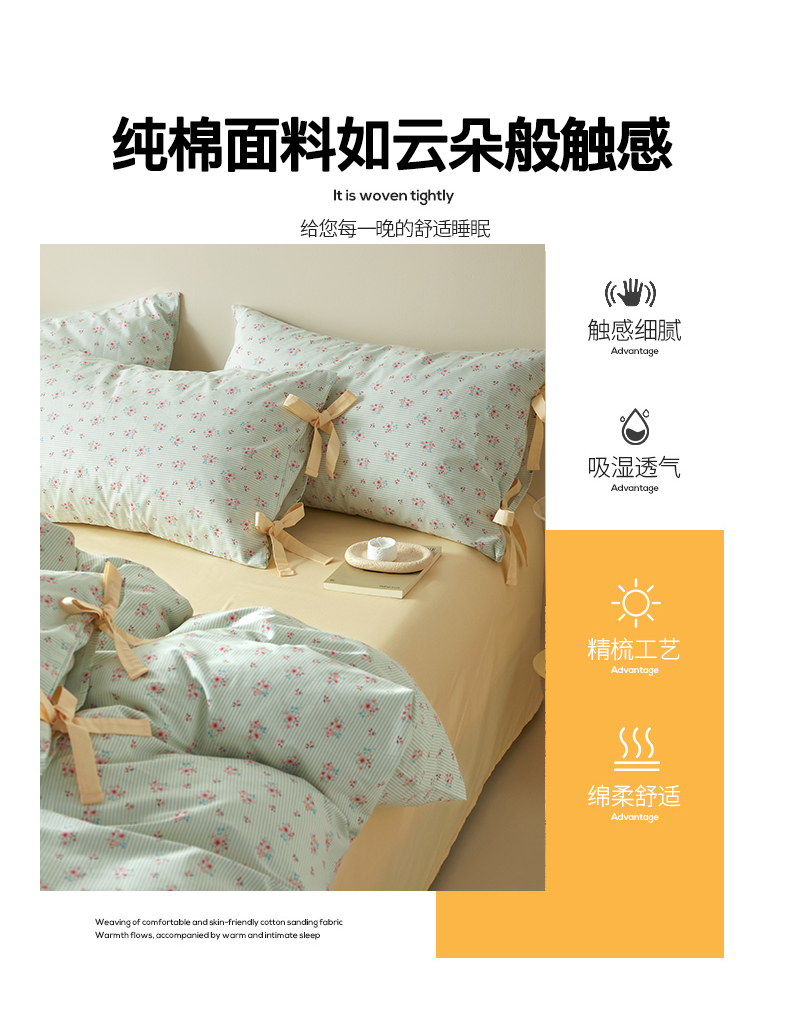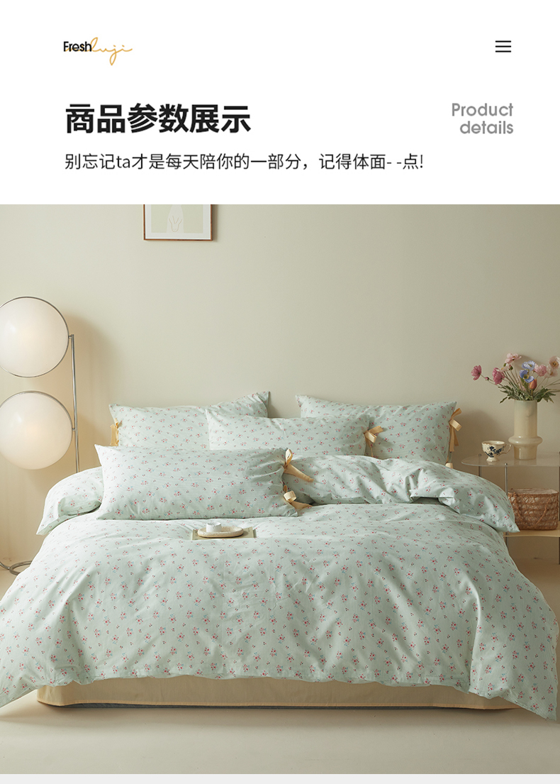 (总)绫韵家纺 2026春夏新款13372全棉ins小碎花纯棉田园风床单床笠四件套系绳蝴蝶结系列,贝贝利亚,沉香,丹恒,花田喜事