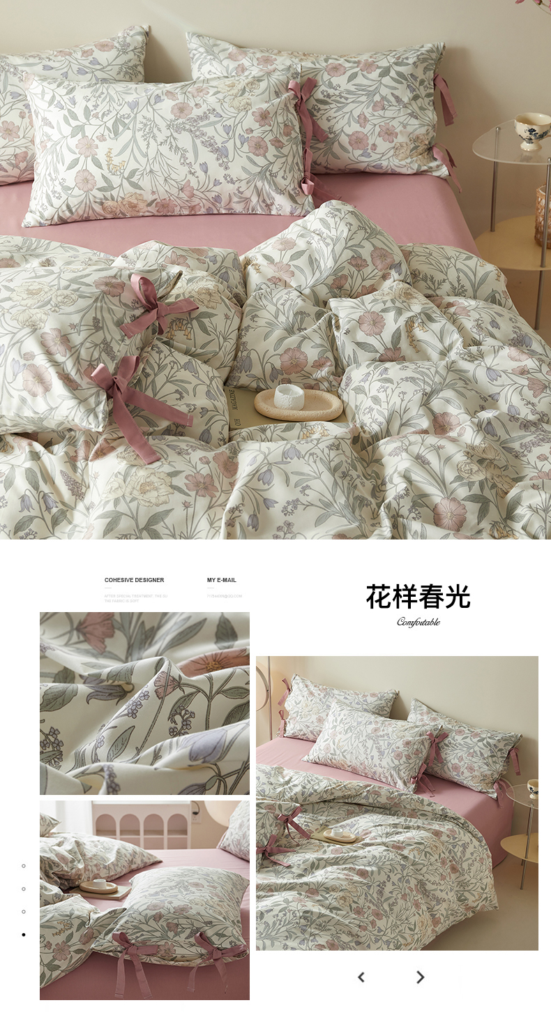 (总)绫韵家纺 2026新款春夏13372全棉蝴蝶结四件套系列,贝贝利亚,丹恒,花样春光,火花,沉香,花田喜事,君雅临风,情有独钟,人间浪漫,舒曼,桃花源,香山雪,紫霞