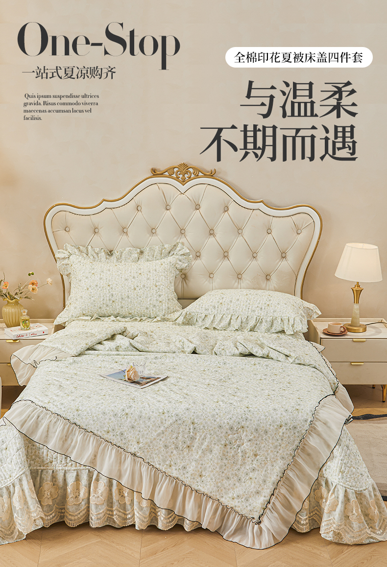宜凡家纺 2026新款全棉数码印花夏被床盖四件套②号系列 茜野