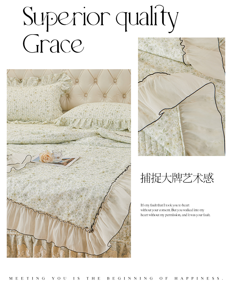 (总)宜凡家纺 2025新款全棉数码印花床裙四件套系列一,静若幽兰,浮云织梦,梦幻花园,陌上花开