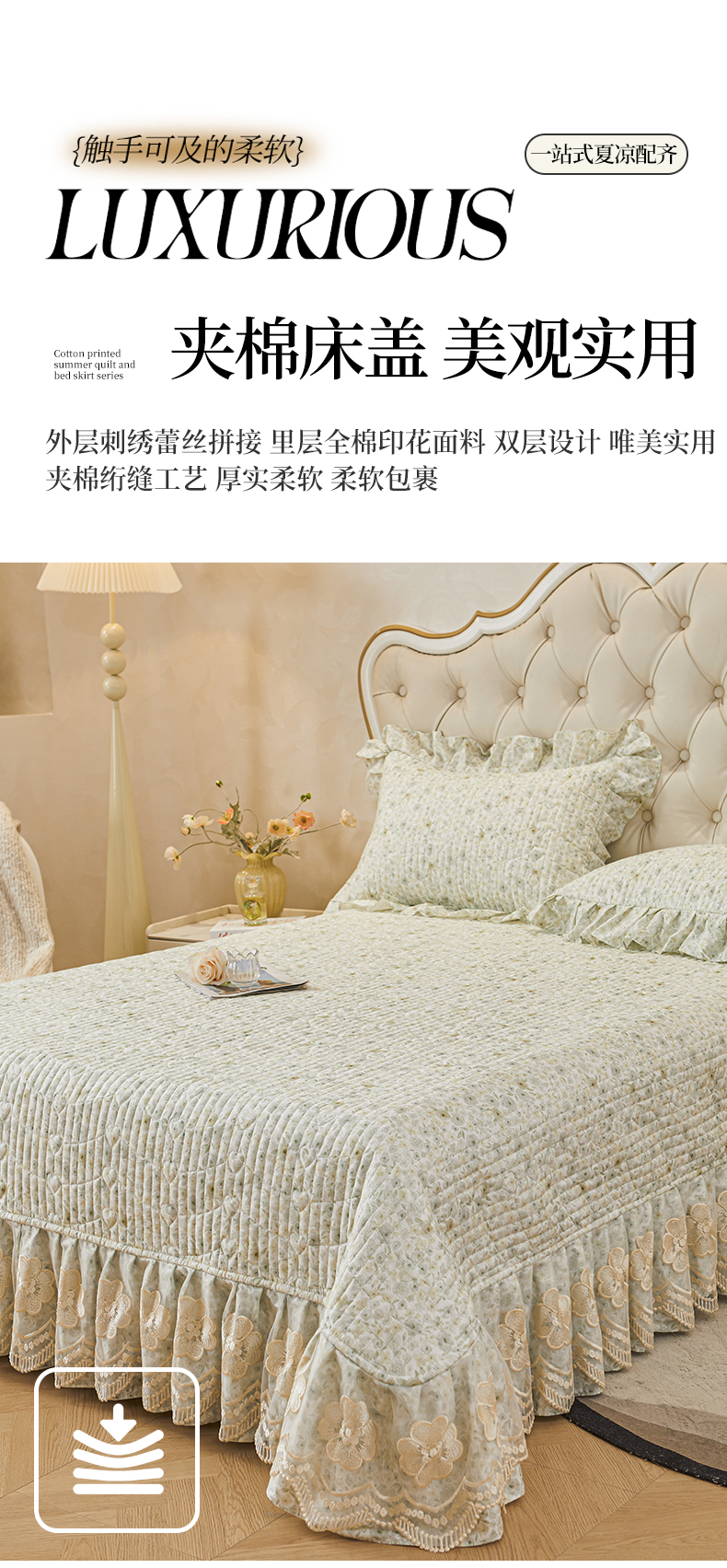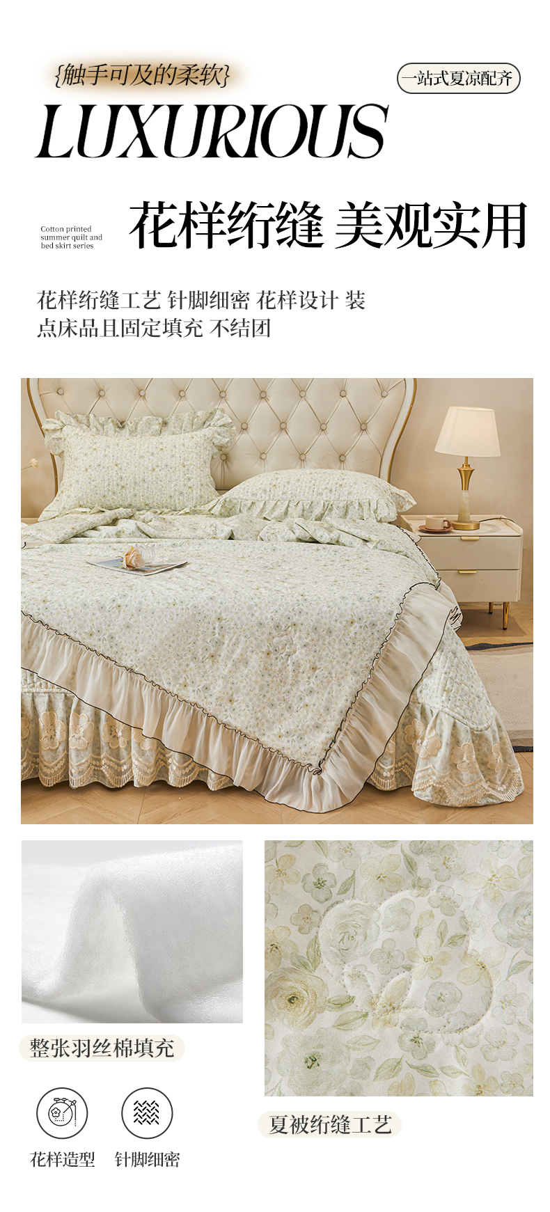 (总)宜凡家纺 2025新款全棉数码印花床裙三件套系列一,静若幽兰,浮云织梦,梦幻花园,陌上花开